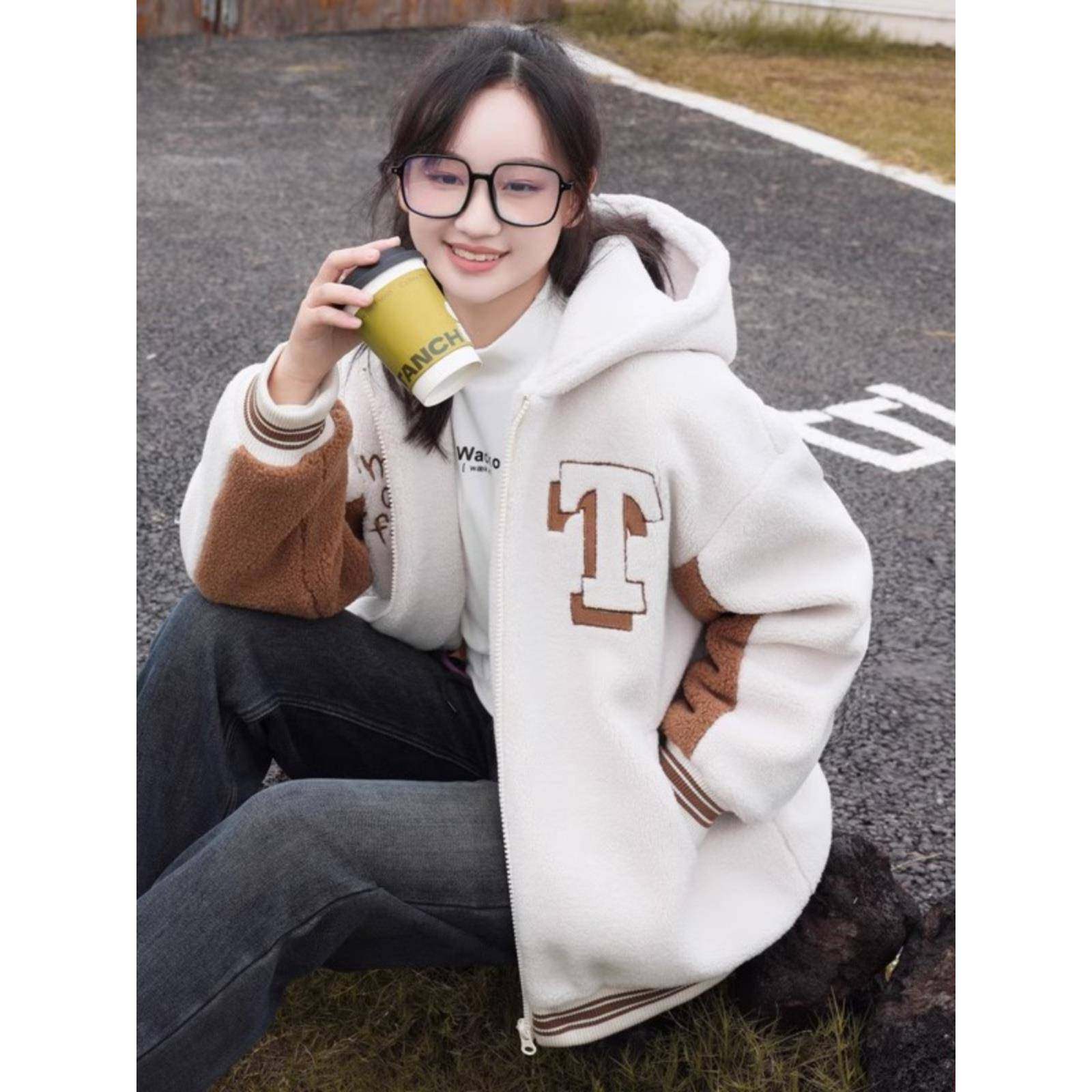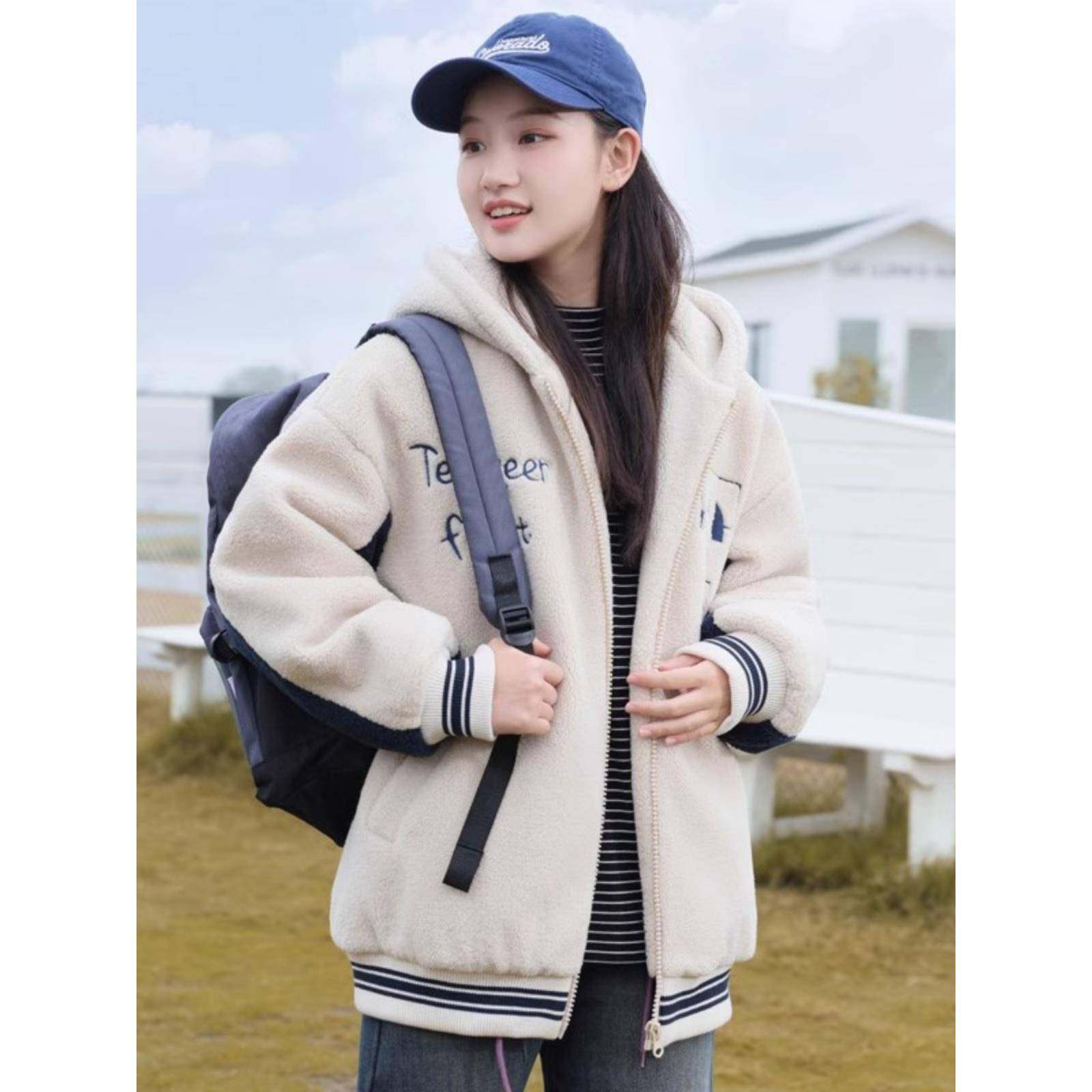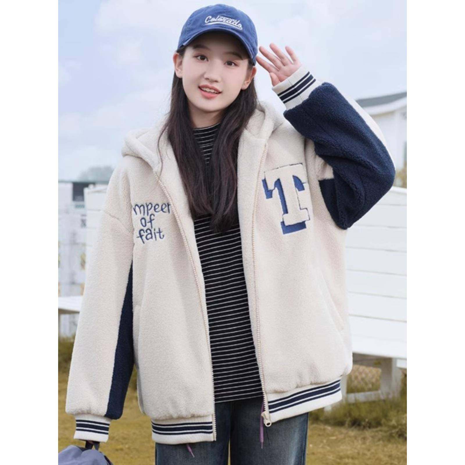 羊羔毛外套棉服少女秋冬装大童加厚拉链上衣初中高中学生可爱棉衣