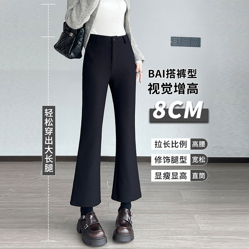 啄木鸟西装微喇裤女新款秋冬修身显瘦九分女裤休闲气质加绒喇叭裤