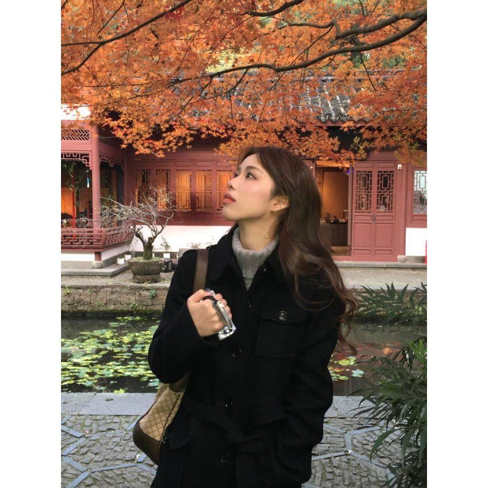 首页> 女装> 【墨棕余韵】复古时尚设计感毛呢大衣简约通勤收腰系带呢子外套女