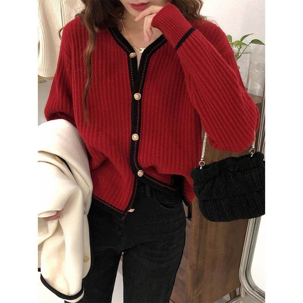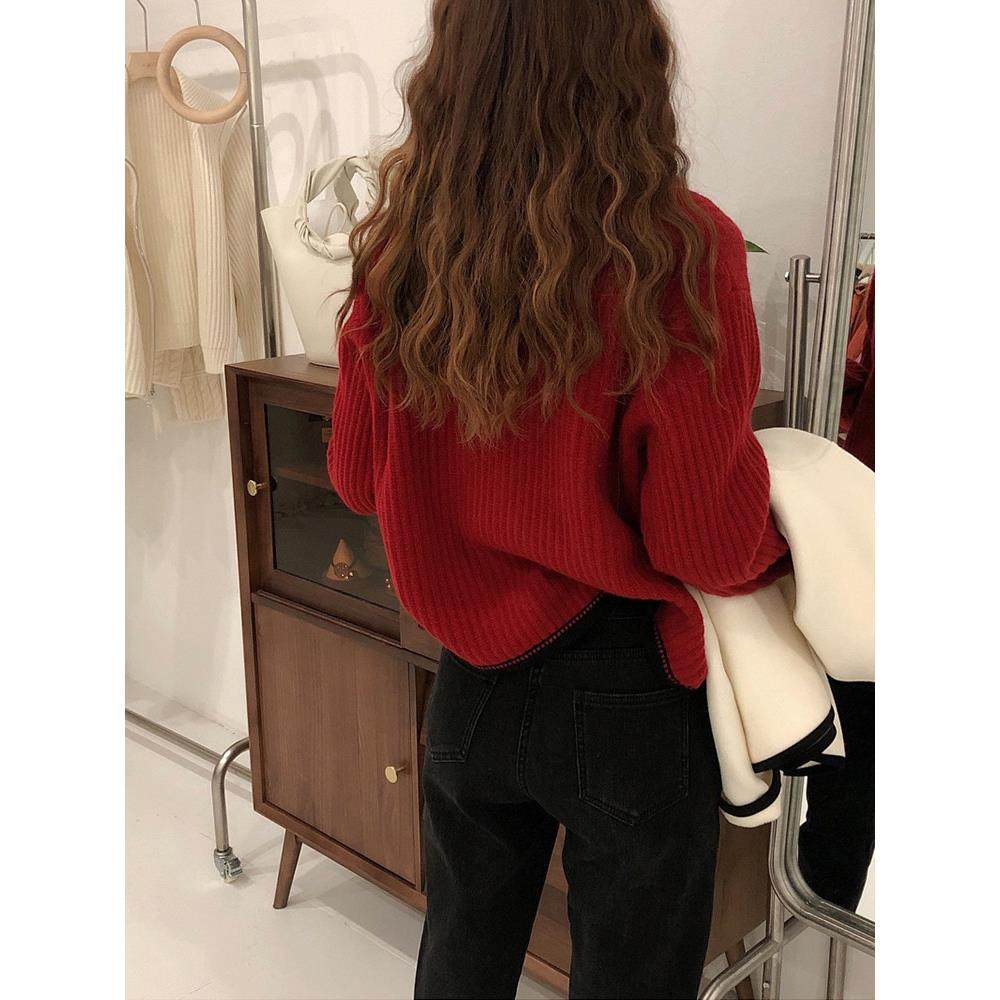 首页> 女装> 法国Rixo Rane墙裂推荐?法式时尚设计感小众新年红色v领毛衣外套