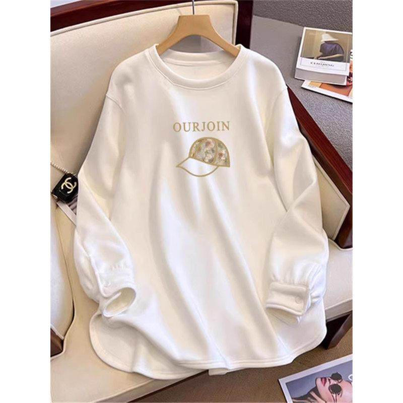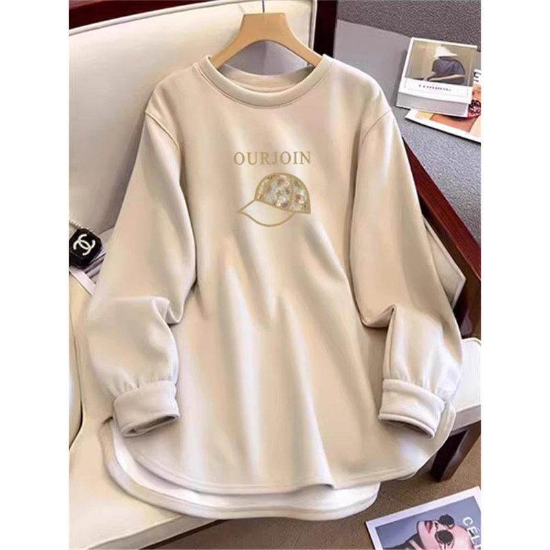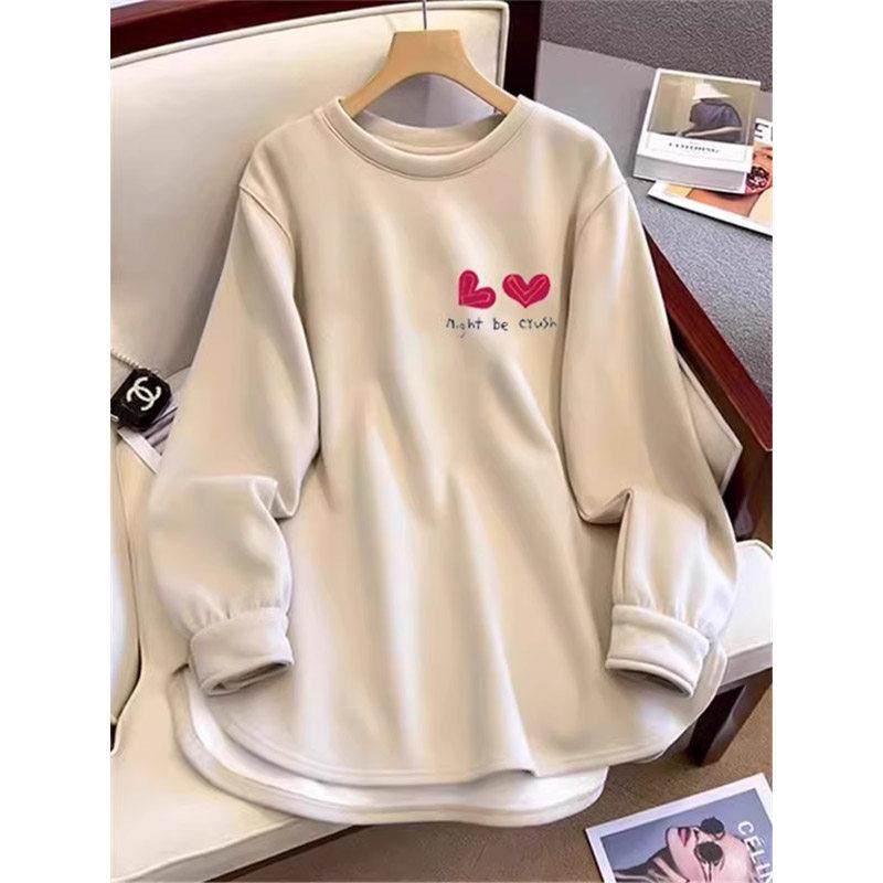 加绒卫衣打底衫女秋季穿搭中长款遮屁股长袖T恤内搭配鲨鱼裤上衣