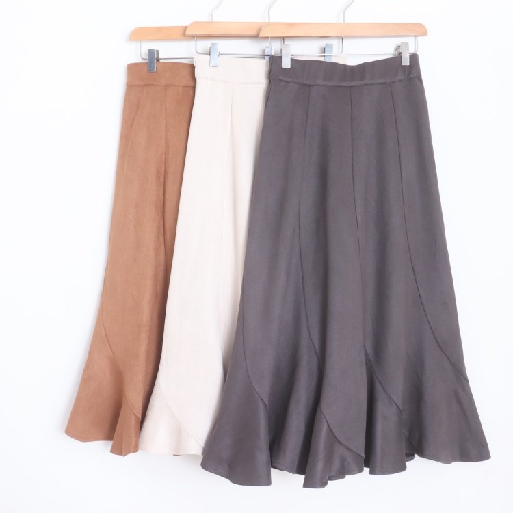 首页> 女装> D15099日单新款客供料后松紧高腰显瘦A字女麂皮绒优雅气质半身裙