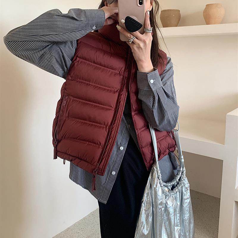 轻质羽绒女士背心秋冬短款多用途立领无袖夹克时尚运动背心