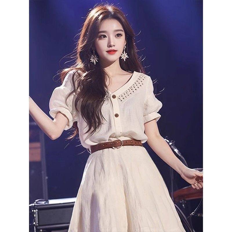 2025新款今年流行爆款初夏穿搭超好看独特漂亮气质白色连衣裙子女