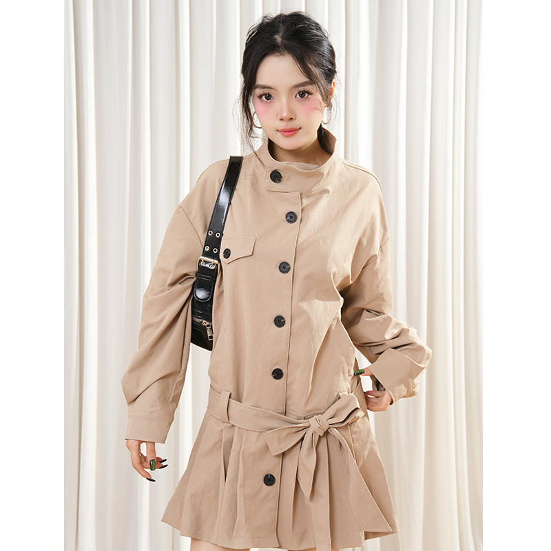 韩系气质卡其色风衣外套女2025秋季新款简约通勤百搭高级感大衣