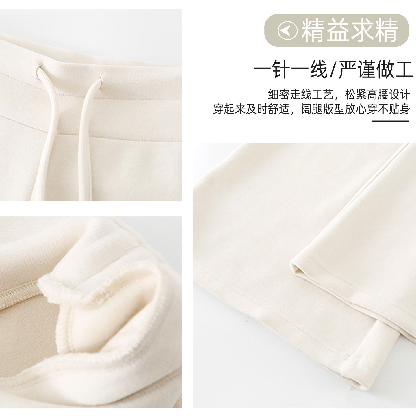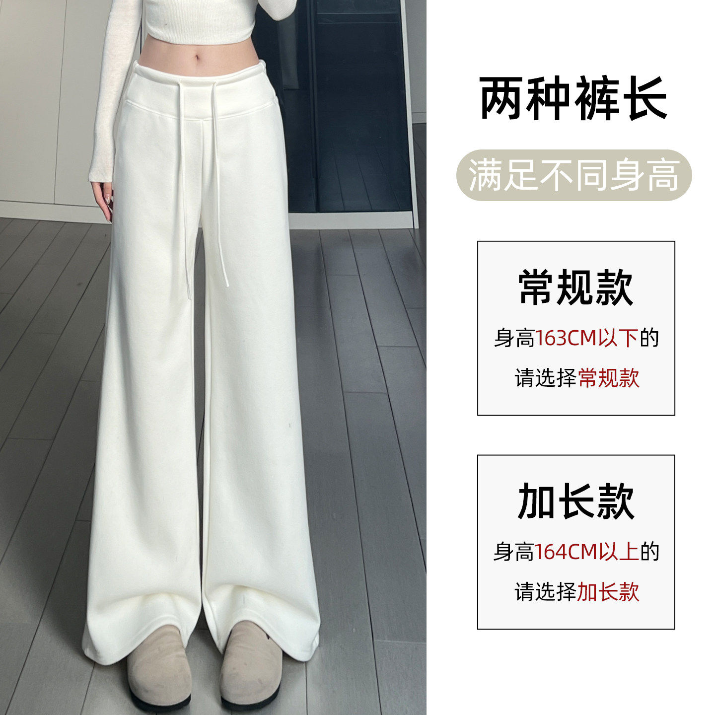 白色裤子女冬季加绒加厚糯米裤垂感窄版直筒仿羊毛阔腿裤运动卫裤