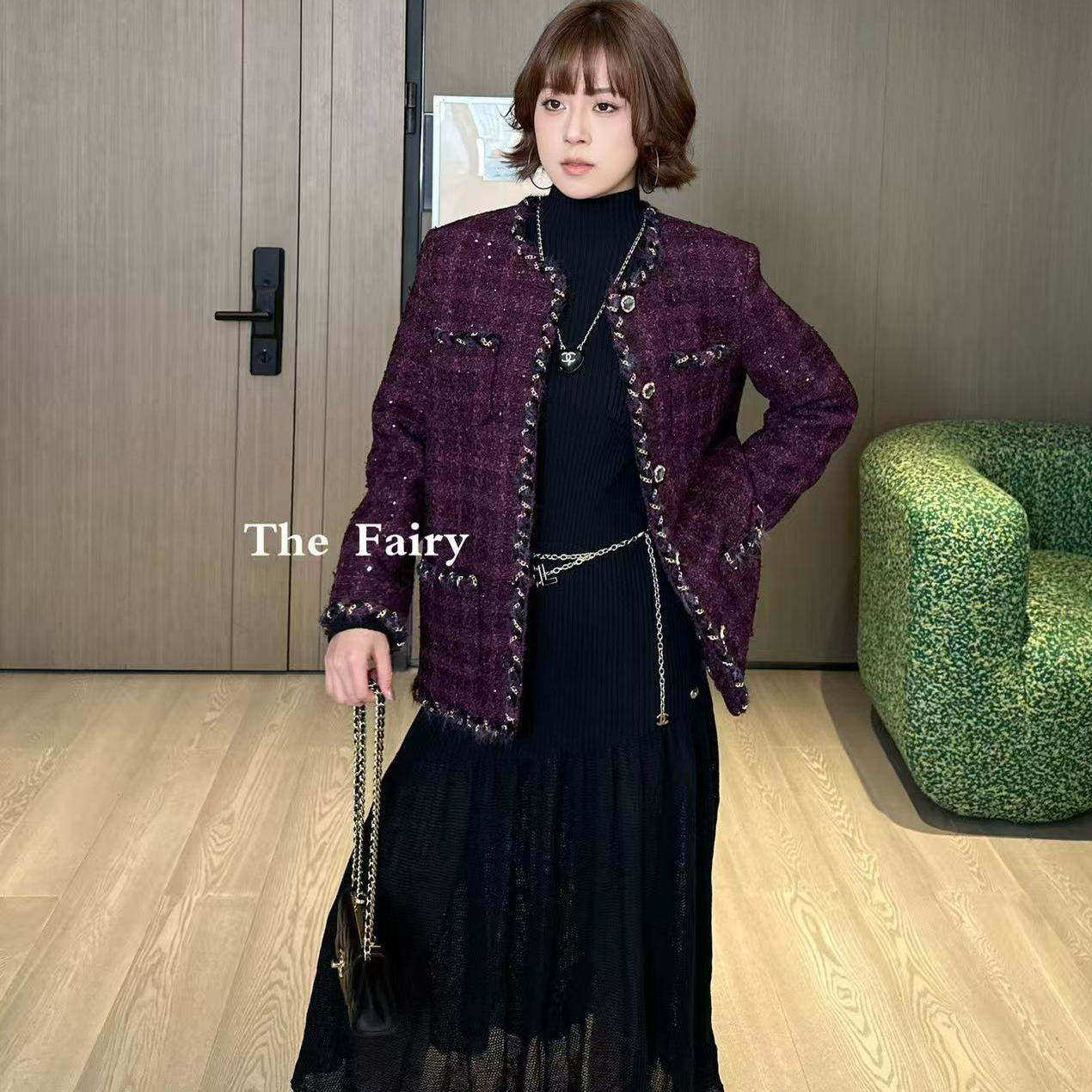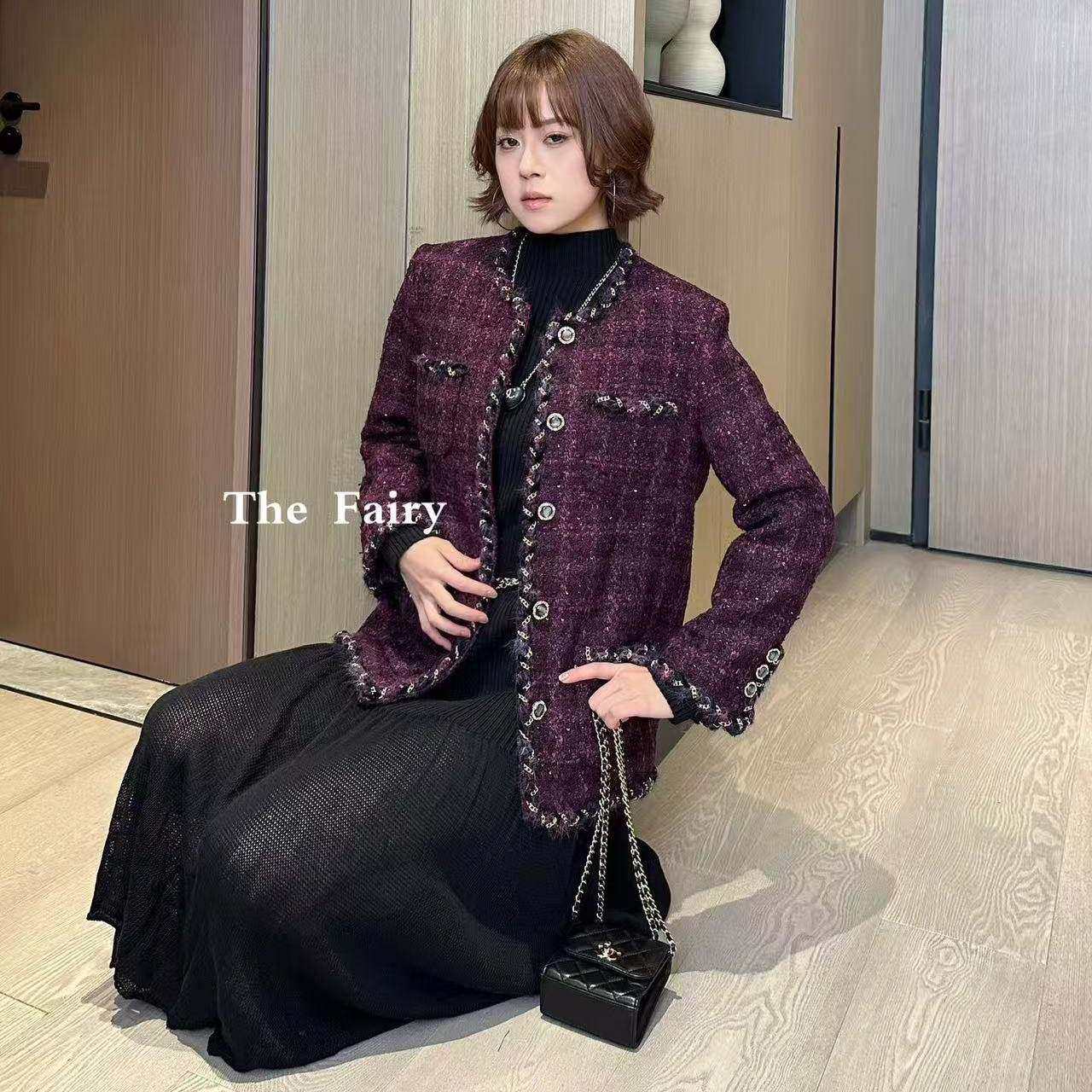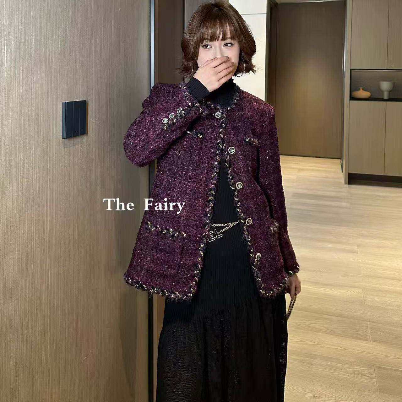 好漂亮好漂亮紫色重工小香风外套女2025年冬季新款短上衣名媛气质