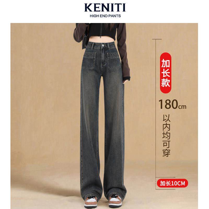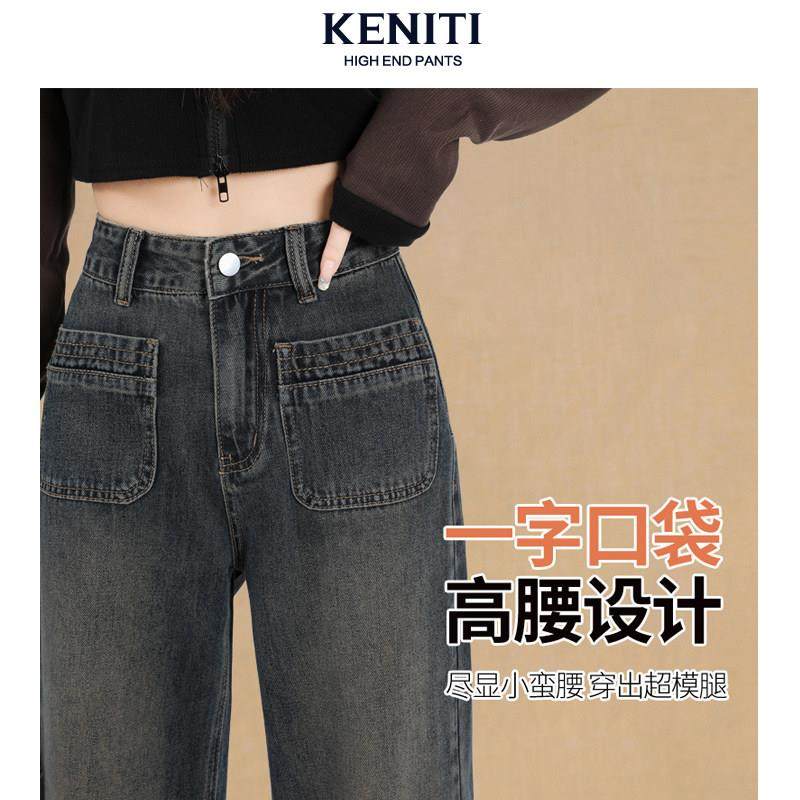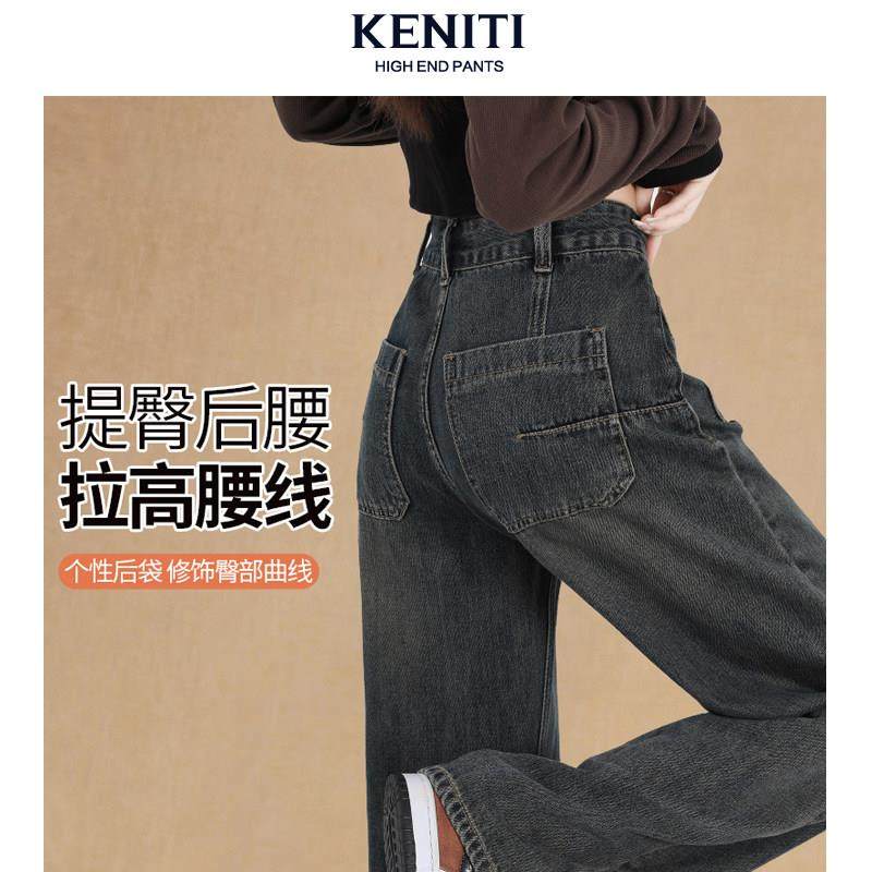首页> 女装> 冬季加绒阔腿牛仔裤女高腰显瘦窄版直筒裤水泥灰宽松显瘦休闲裤子