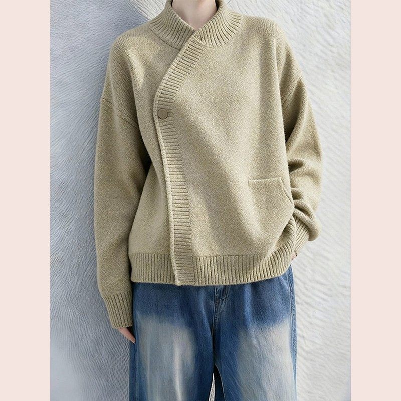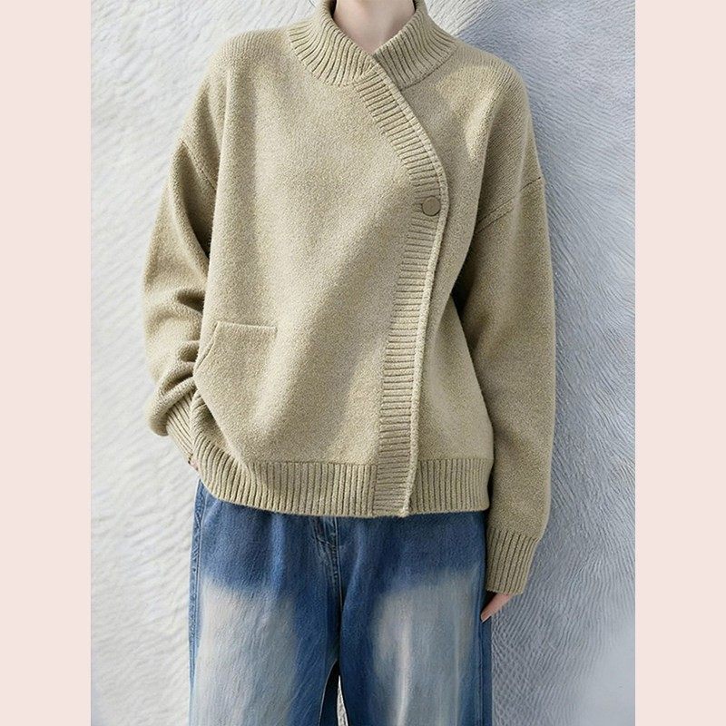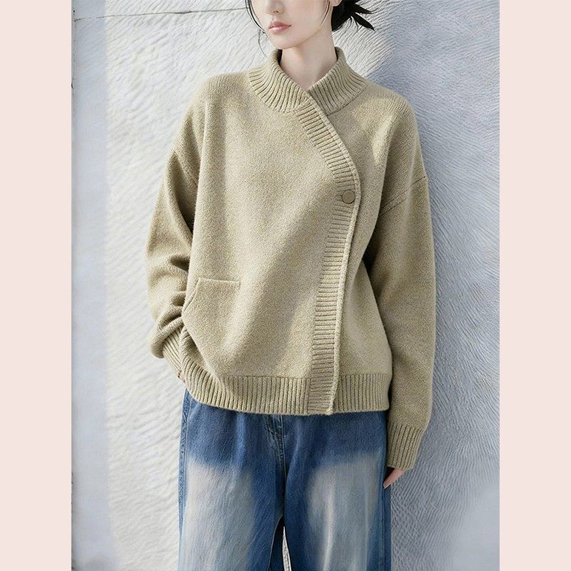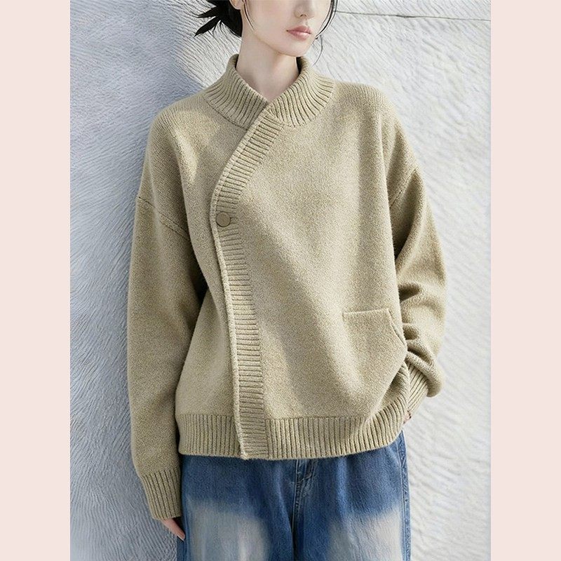 禅意风米黄色交襟斜扣毛衣外套慵懒高级感复古中式针织外套2025冬