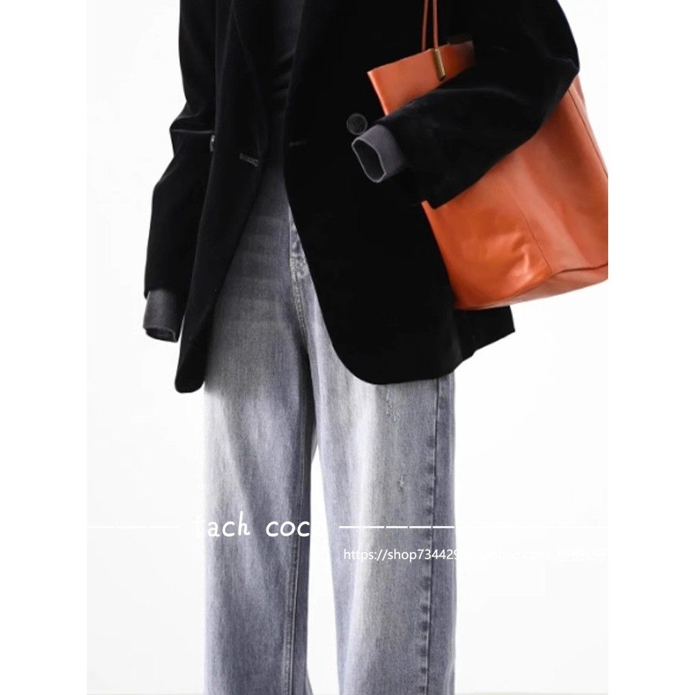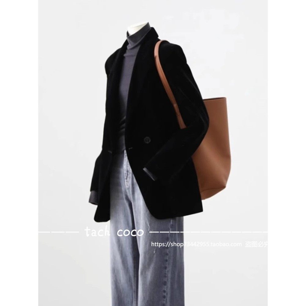 Tach Coco法式覆古百搭西装领通勤上衣女2025秋冬季西装丝绒外套