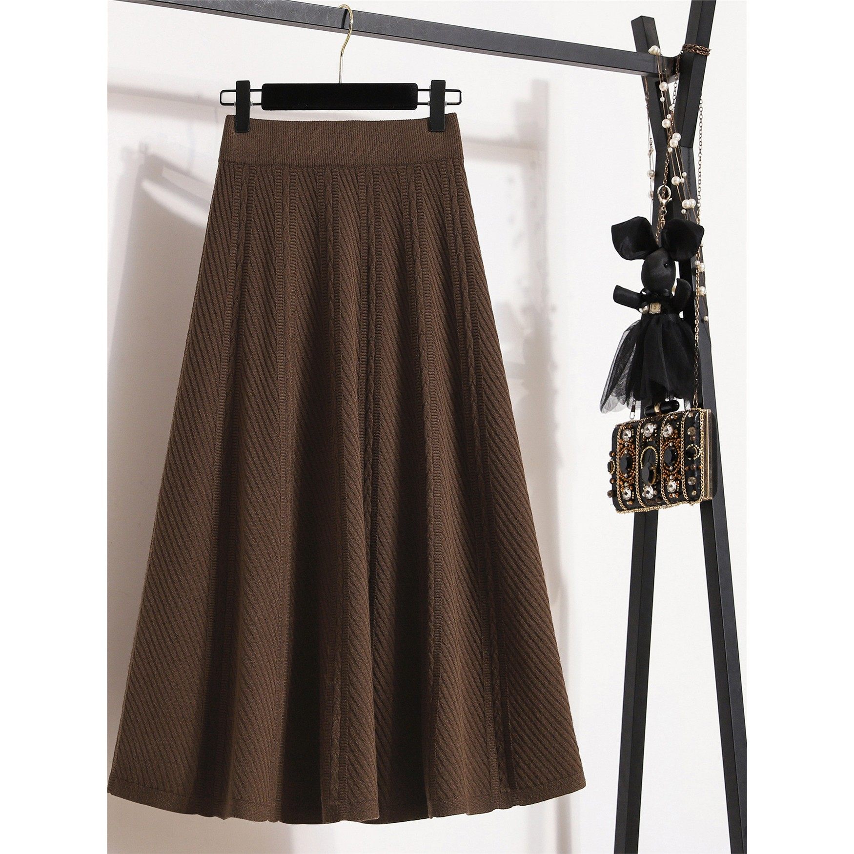 大码女装秋季2025新款胖mm针织半身裙女士百搭高腰显瘦A字大摆裙