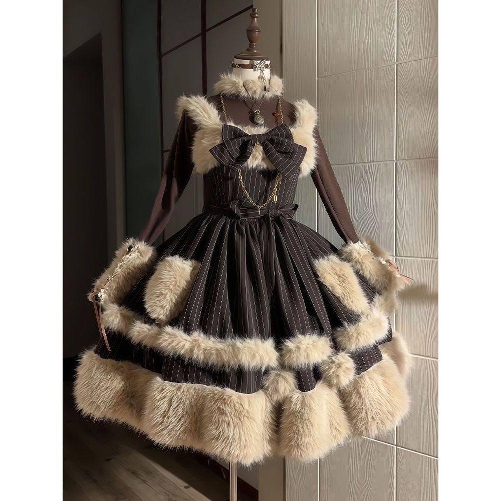 首页> 女装> 【栗子蒙布朗】小个子复古洛丽塔蝴蝶结条纹吊带裙+内搭两件套装
