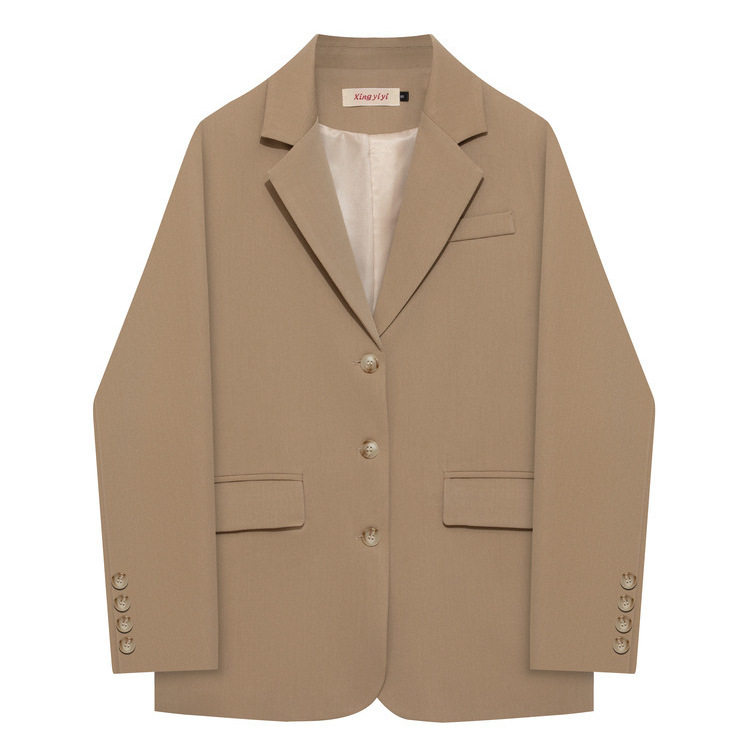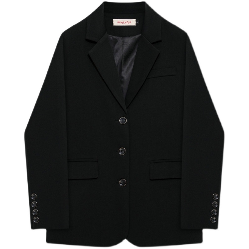 高级感自制黑色西装外套女韩版长款单排扣宽松休闲西服上衣外套