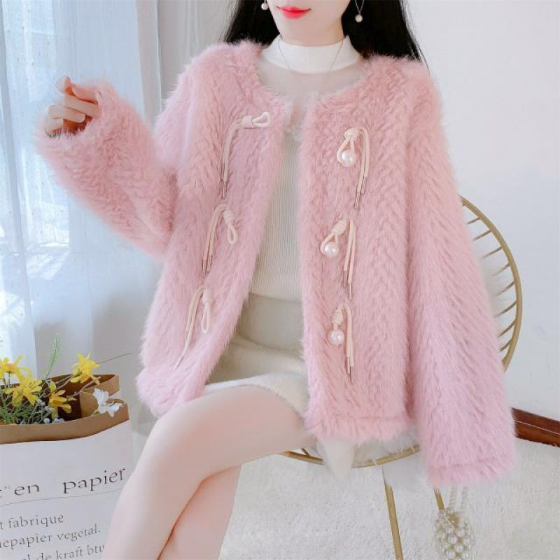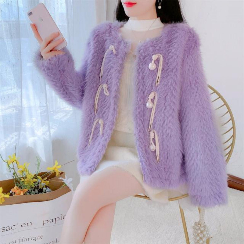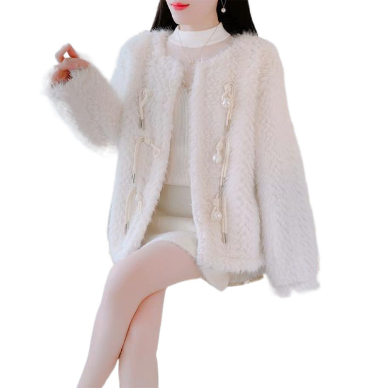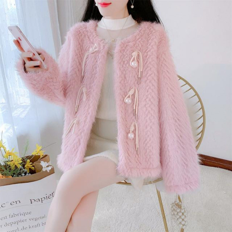冬季2024年新款小众皮毛一体仿水貂绒毛呢外套女高级感加厚小个HZ