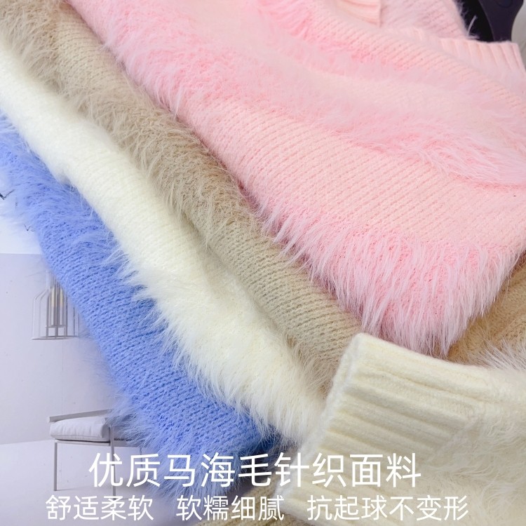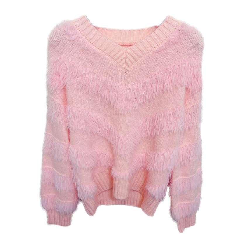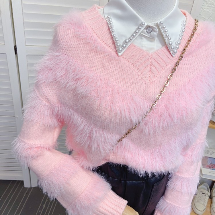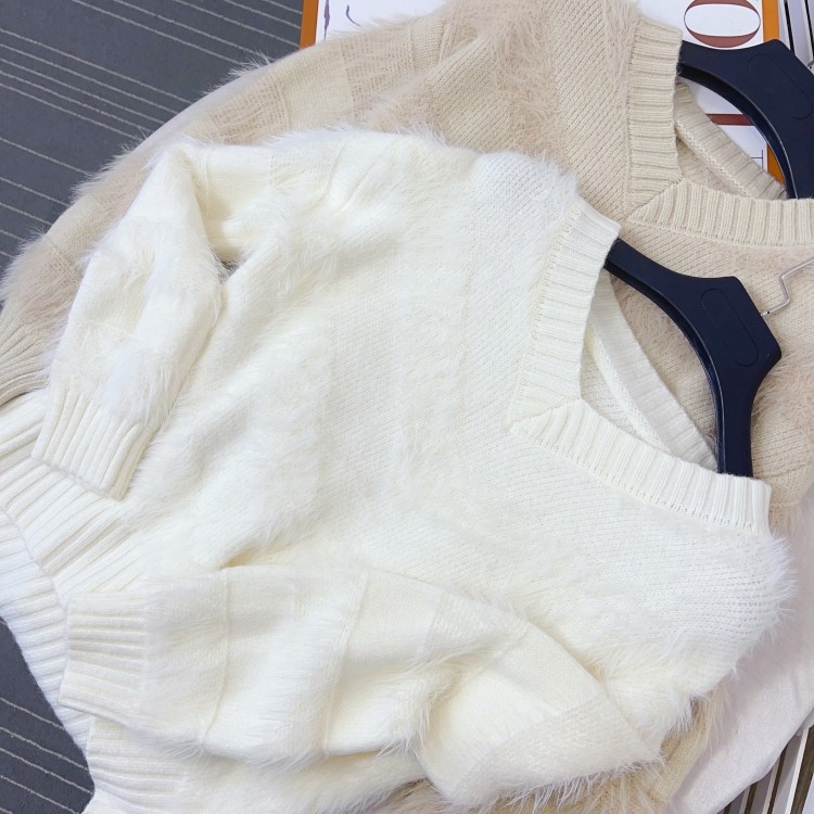 V领水貂绒打底毛衣女秋冬季新款毛茸茸马海毛内搭保暖针织衫上衣