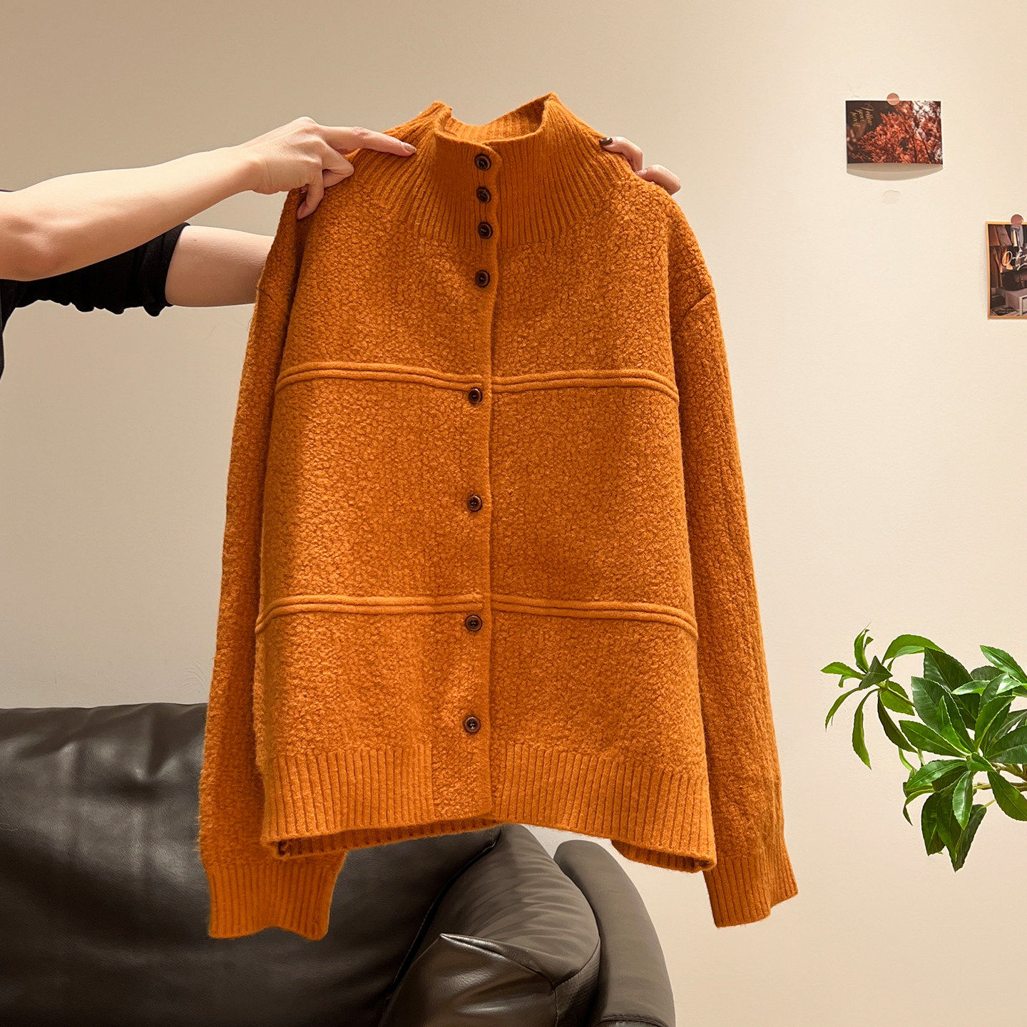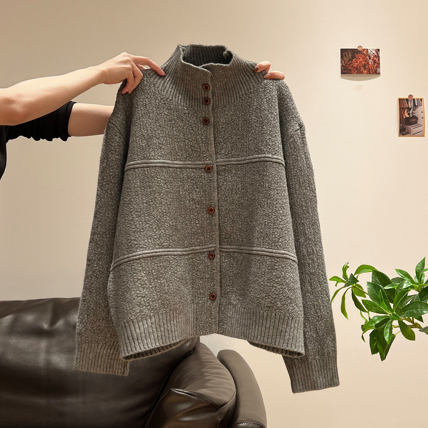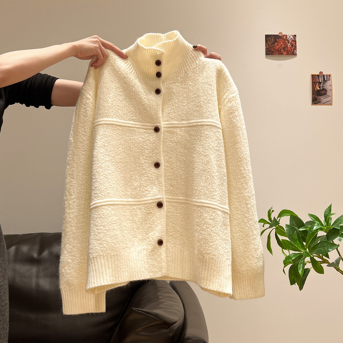 白色高领加厚长袖毛衣外套立领内搭冬季宽松高级感针织开衫上衣女