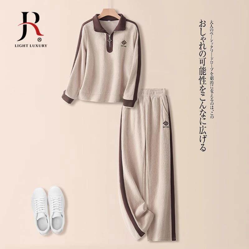 首页> 女装> 时尚运动套装女新款春秋季印花刺绣半拉链卫衣小个子妈妈装两件套