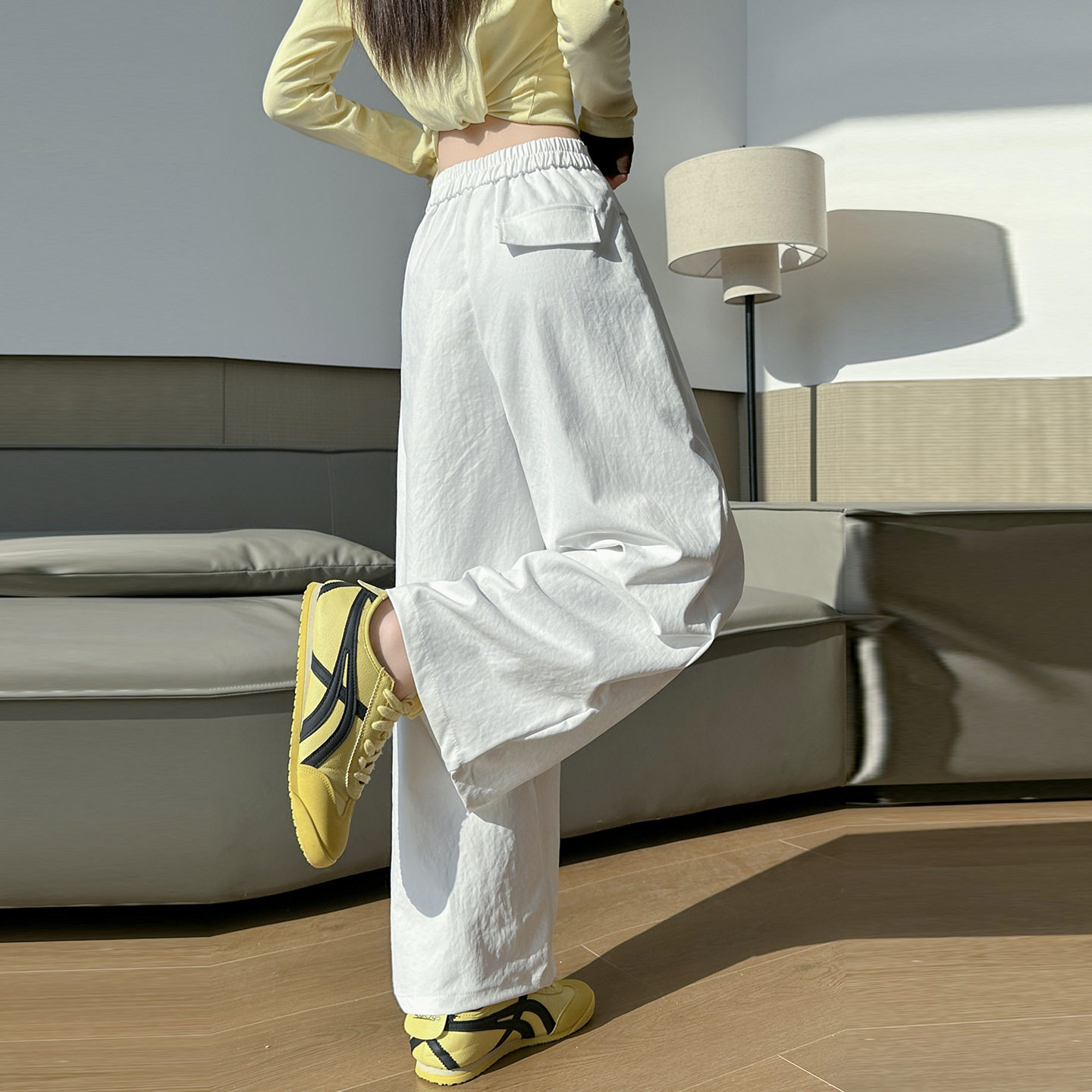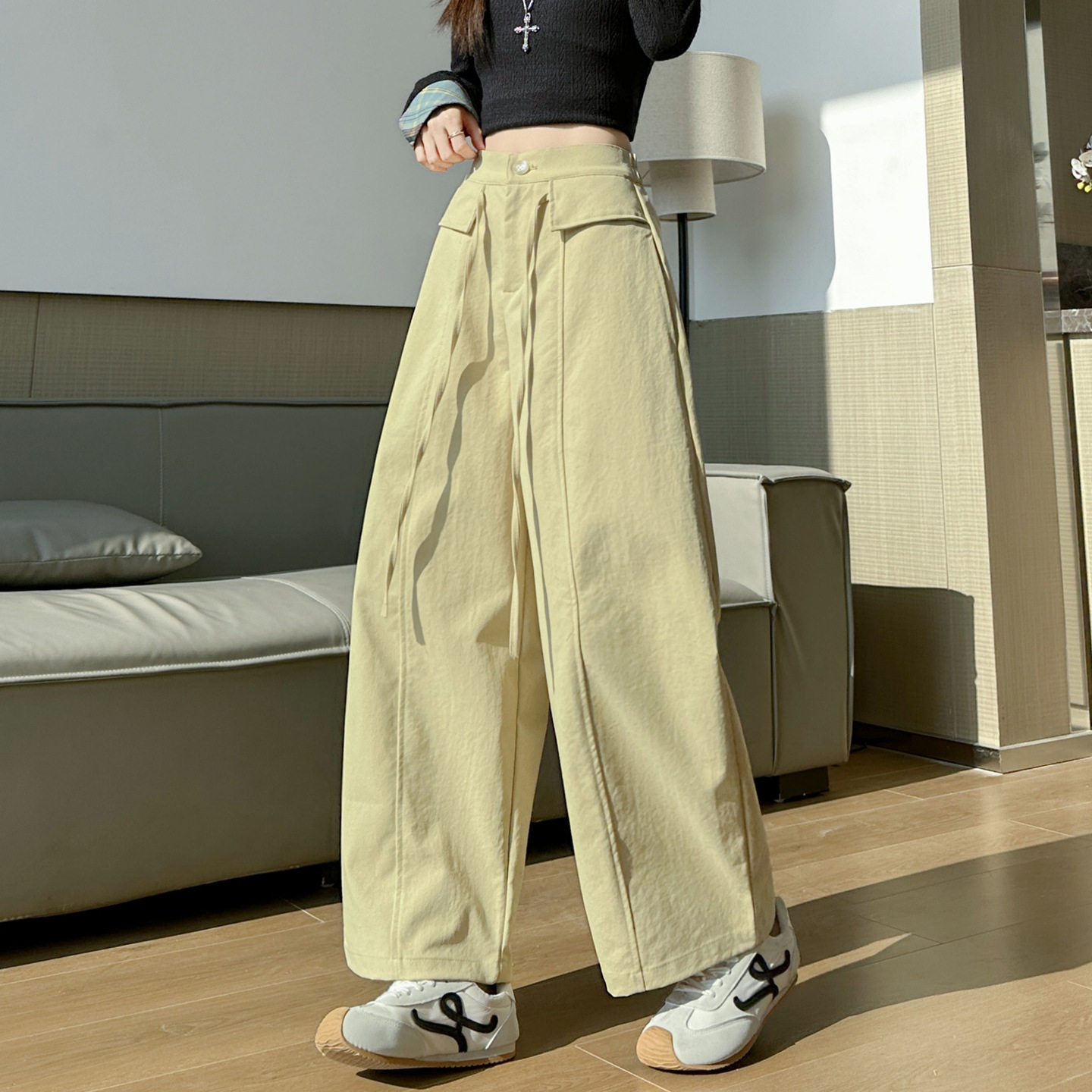 首页> 女装> 2026春新款设计感高腰阔腿西装休闲裤女松紧腰宽松直筒垂感直筒裤