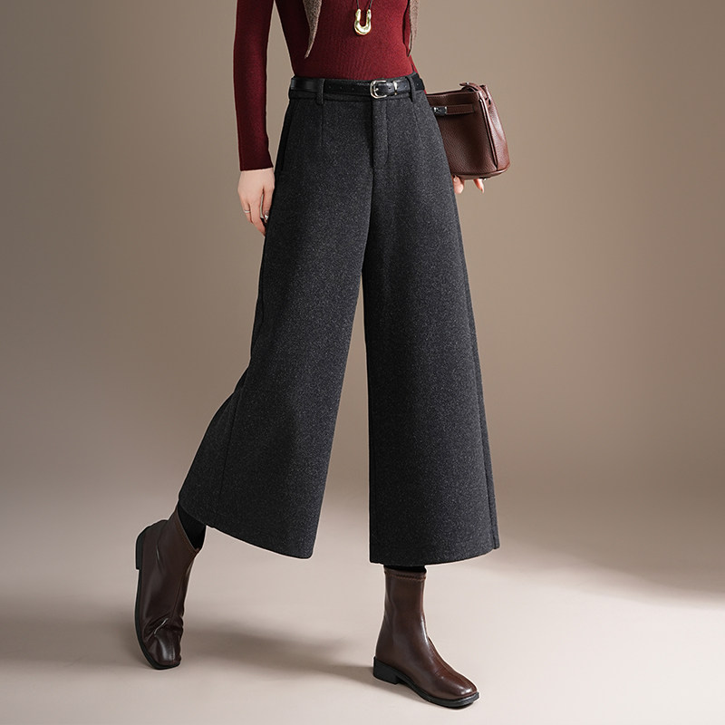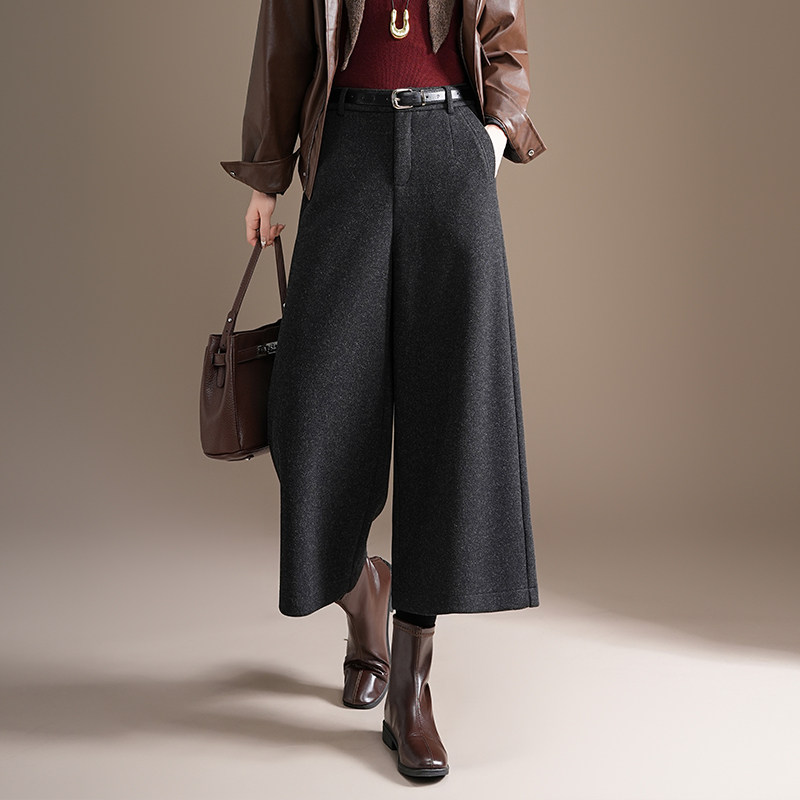 简约百搭阔腿裤女2025秋冬新款高腰遮胯显瘦宽松直筒休闲九分裤子