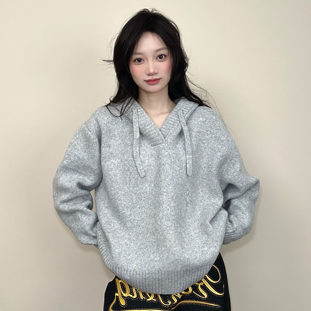 JADEQILIN秋冬宽松连帽针织衫百搭情侣慵懒感休闲毛衣