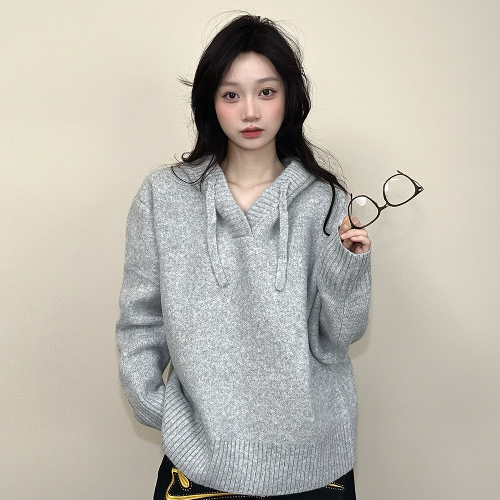 首页> 女装> JADEQILIN秋冬宽松连帽针织衫百搭情侣慵懒感休闲毛衣