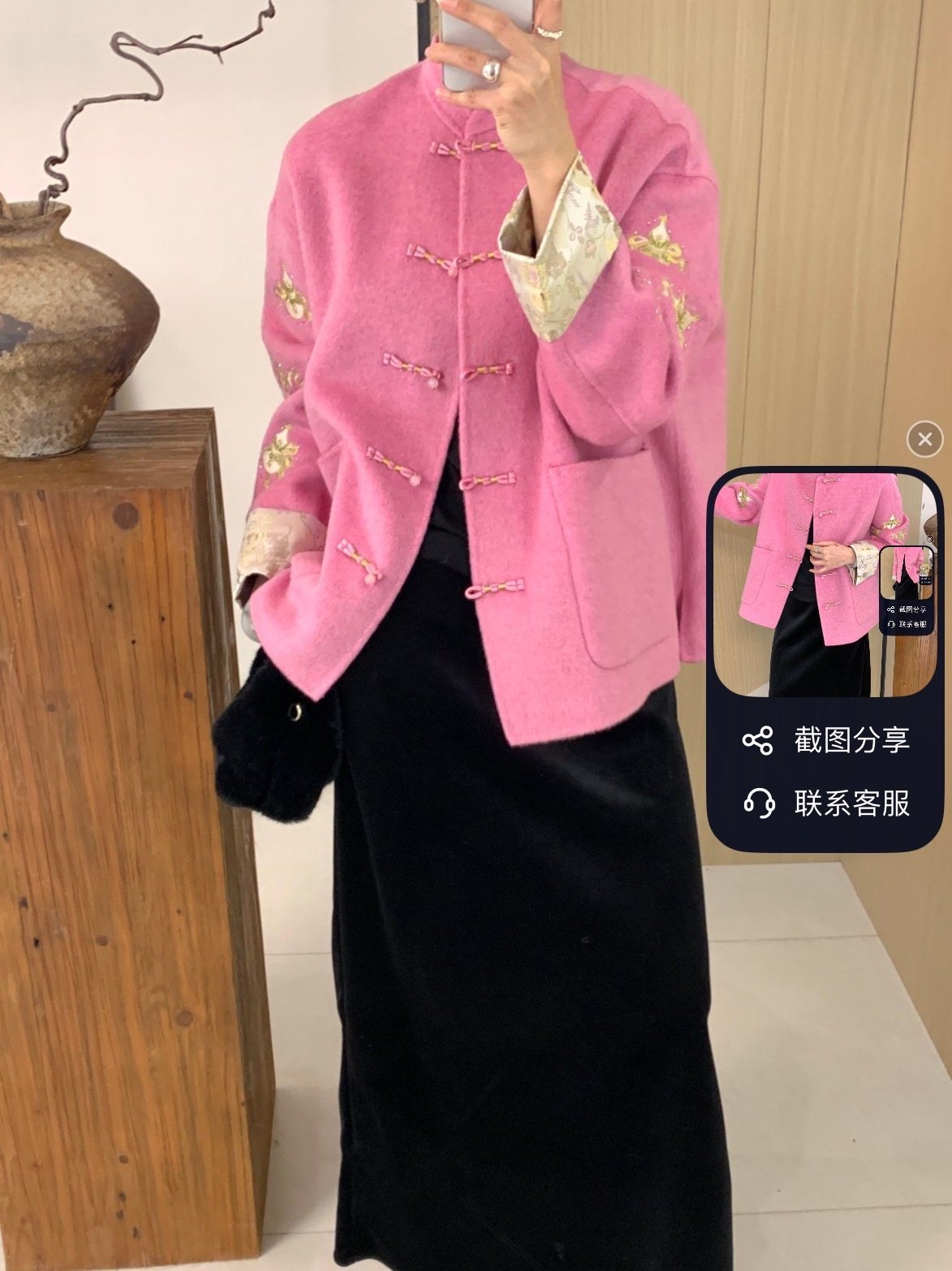 中式国风重工钉珠镶钻羊毛外套女高级感立领双面毛呢上衣葫芦刺绣