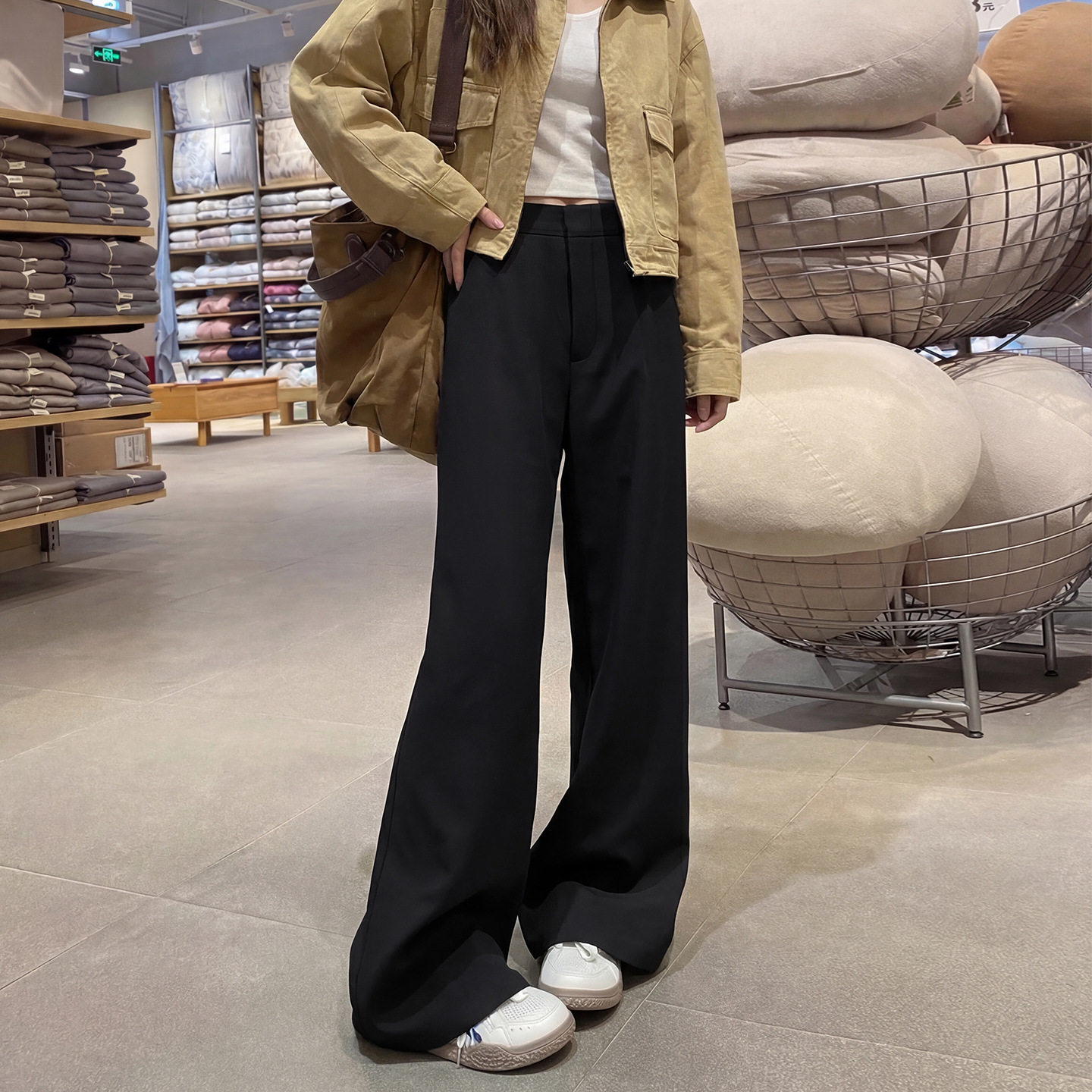 首页> 女装> 卡其色阔腿裤女裤子2026新款春秋季老钱风大码胖mm宽松显瘦西装裤
