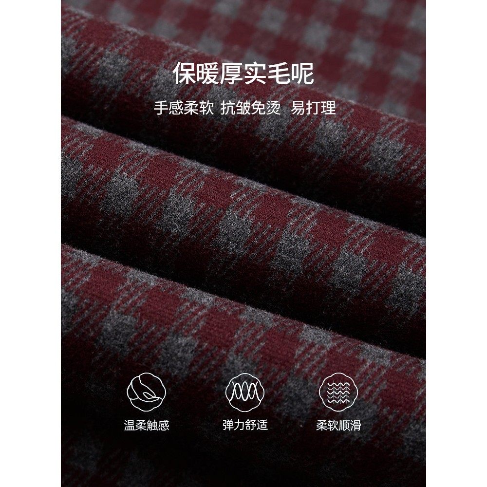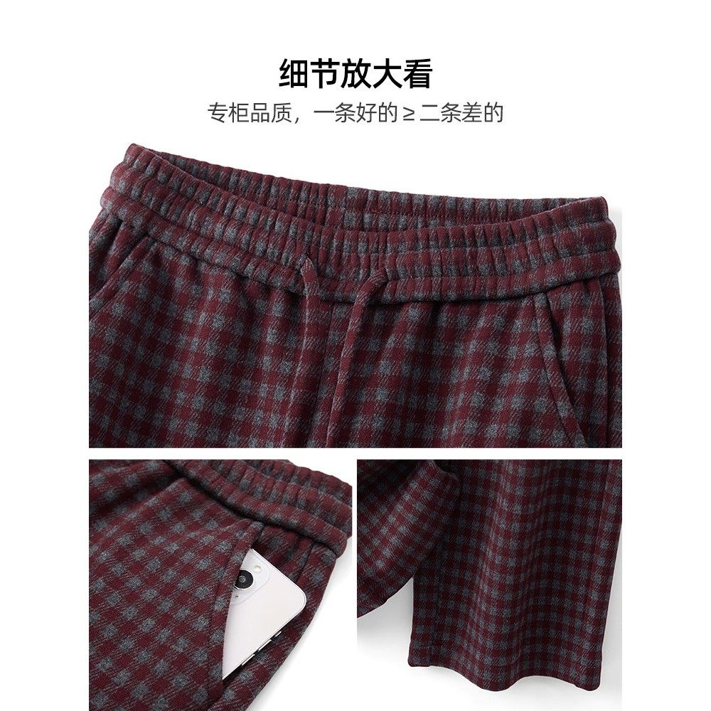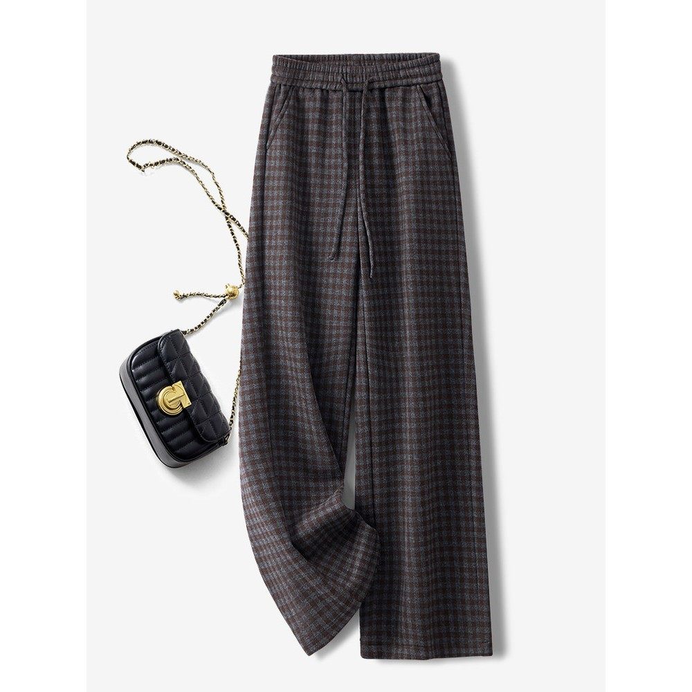 高级感安可拉红格子毛呢阔腿裤女秋冬2025新款慵懒松弛感直筒裤子