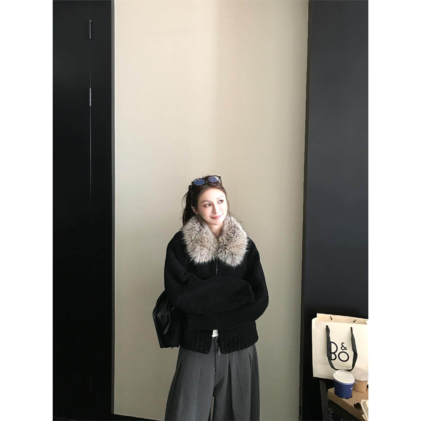 '北海道恋曲'独家麂皮绒里布定染长尖毛领覆合环保小颗粒毛毛外套