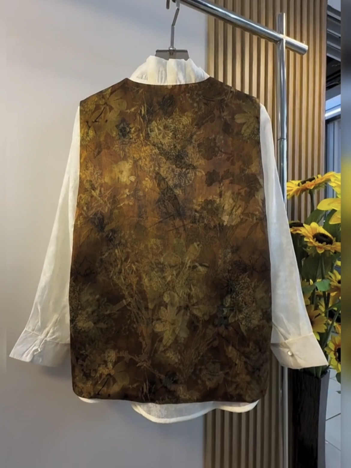 秋冬大码女装新中式国风盘扣衬衫马夹显瘦减龄内搭小众外穿上衣潮