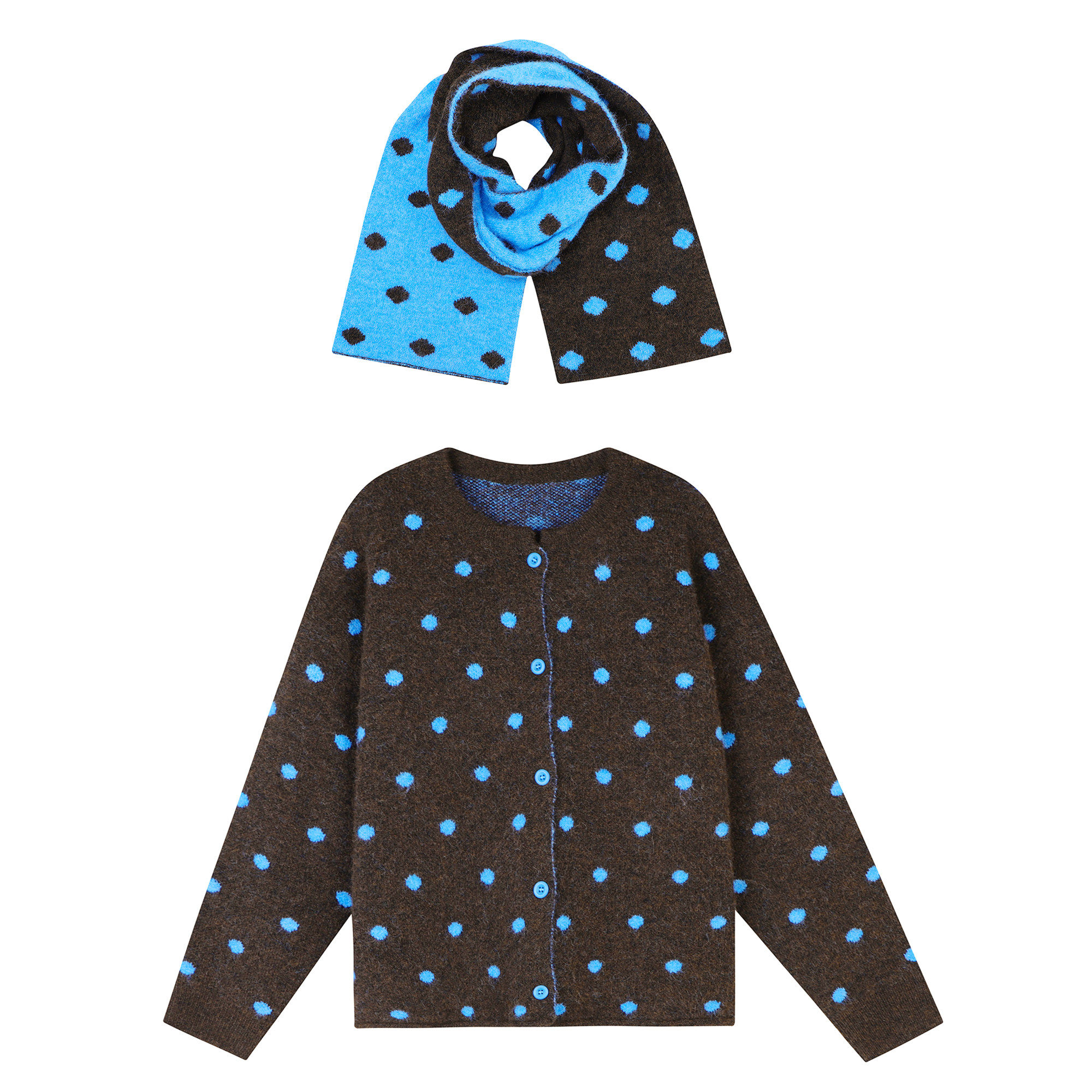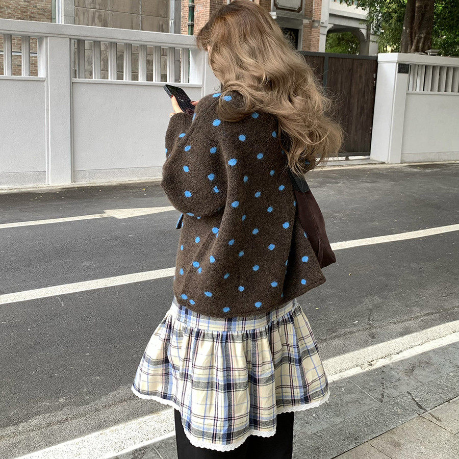 馨帮帮 自制配围巾彩色波点毛衣2025秋冬复古叠穿针织开衫外套女