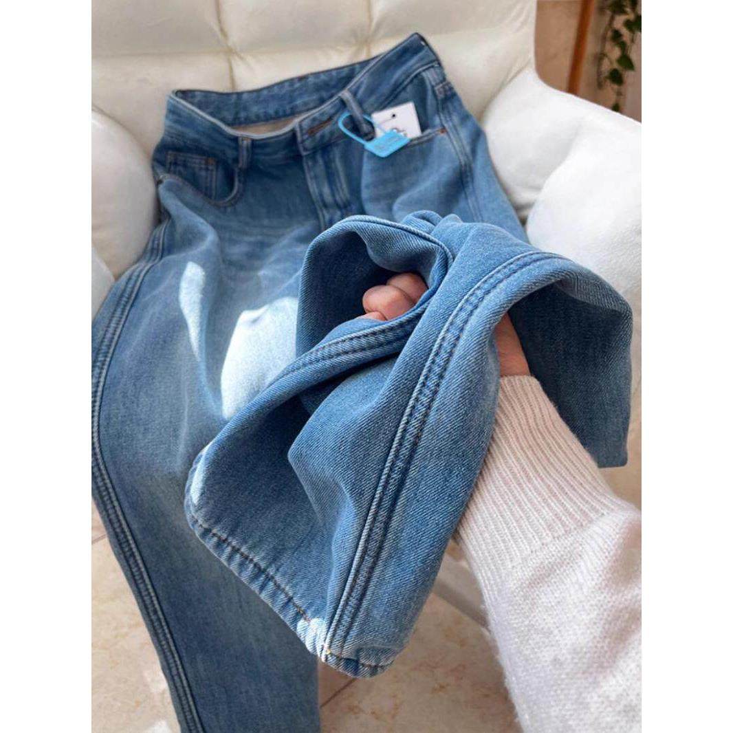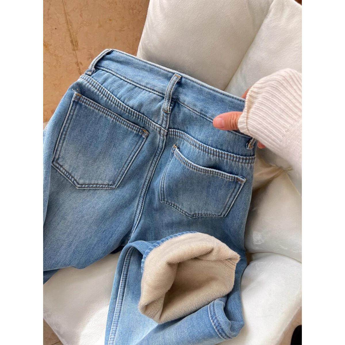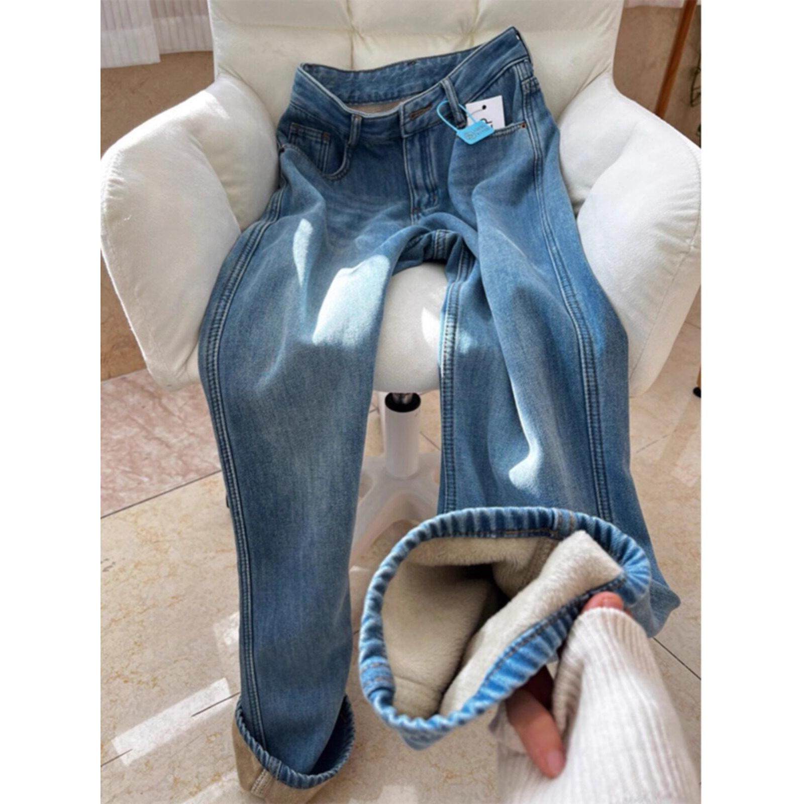 首页> 女装> 冬季加绒加厚直筒牛仔裤女2025新款大码显瘦高腰休闲窄版阔腿裤子