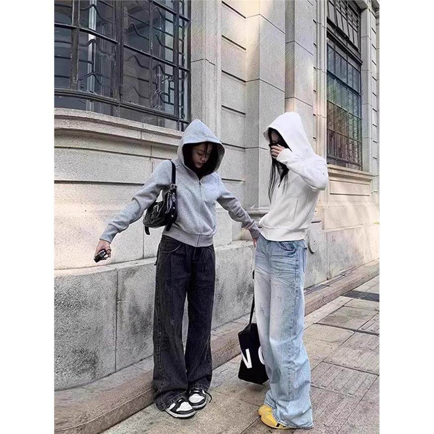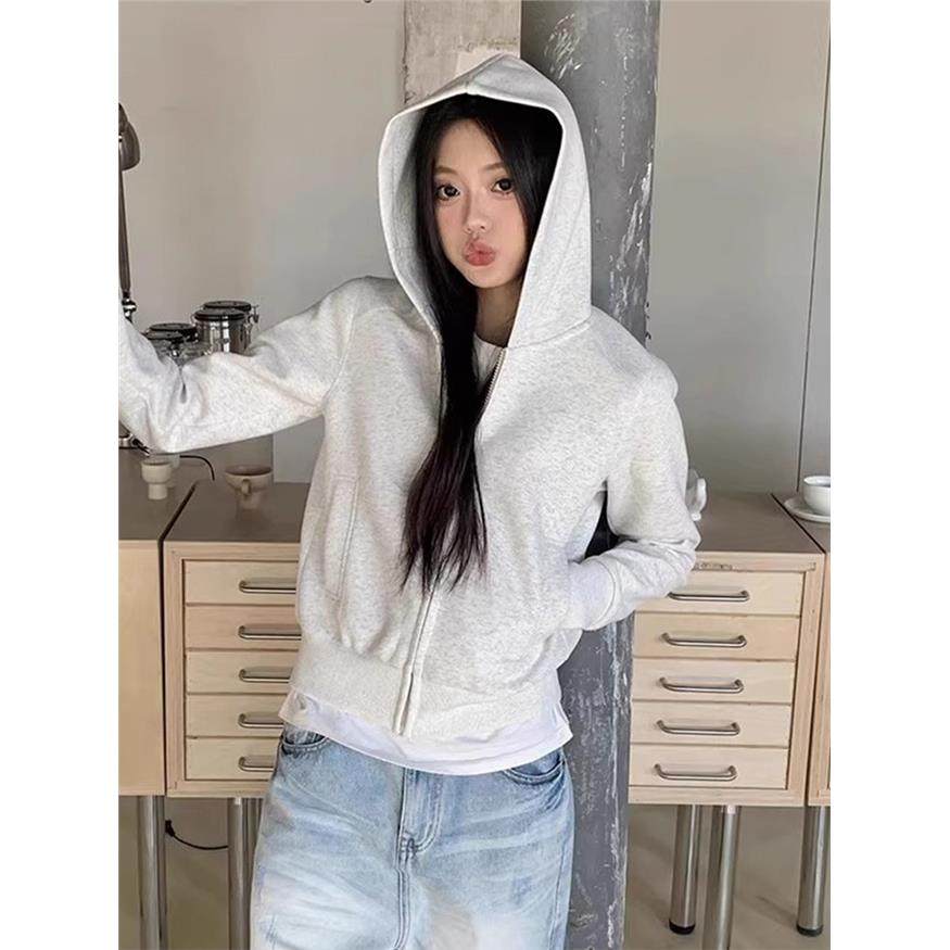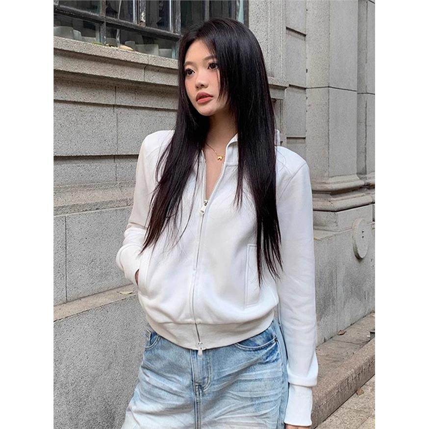 白色短款卫衣外套女2025新款爆款小个子春秋冬加绒设计感拉炼开衫