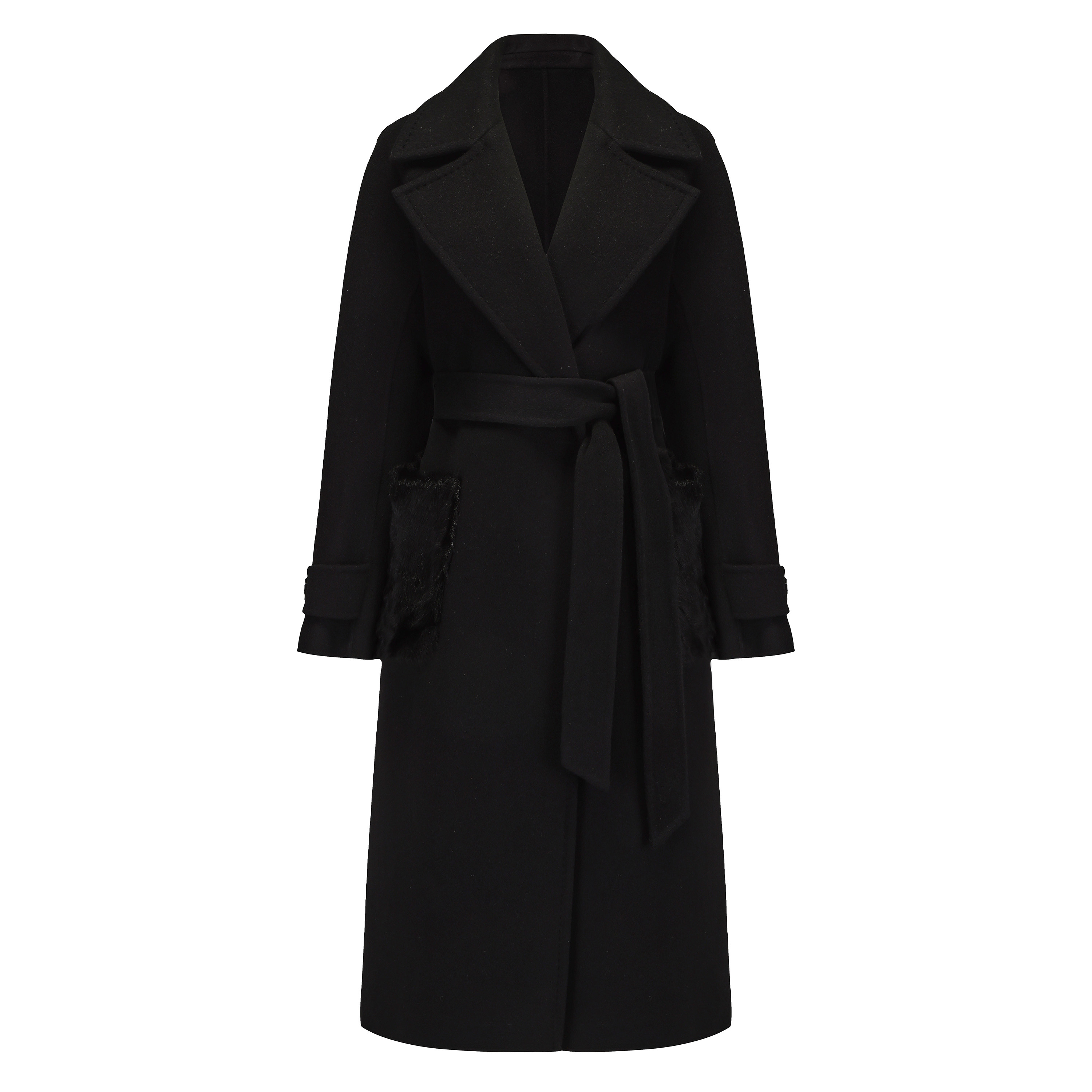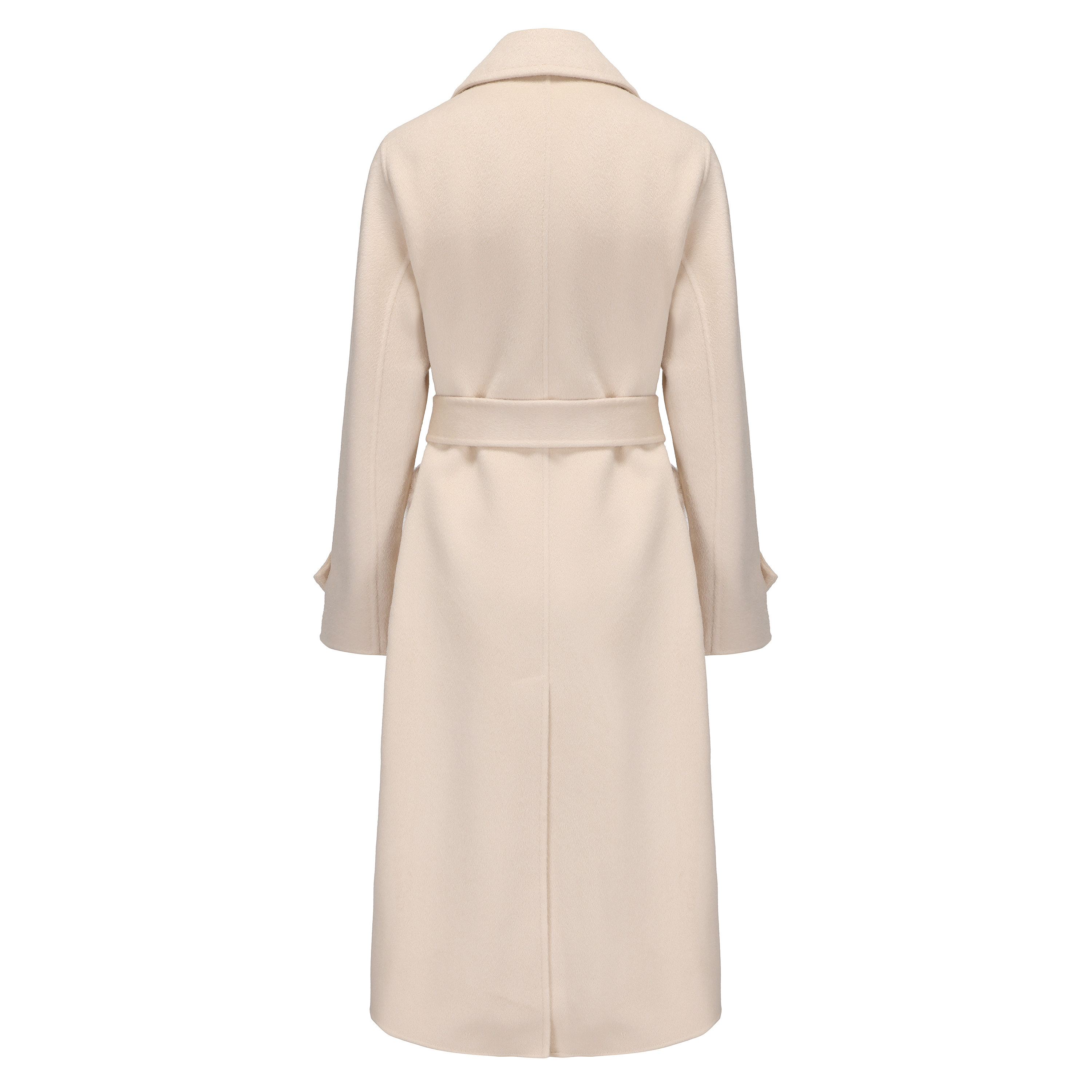 AM薄款毛呢外套气质腰带中长款大衣呢大衣双面呢女士624056