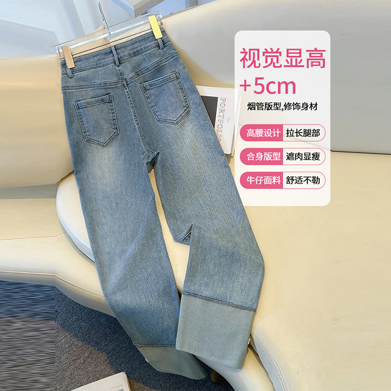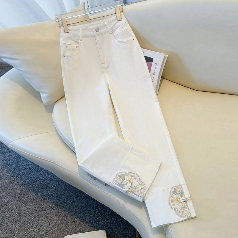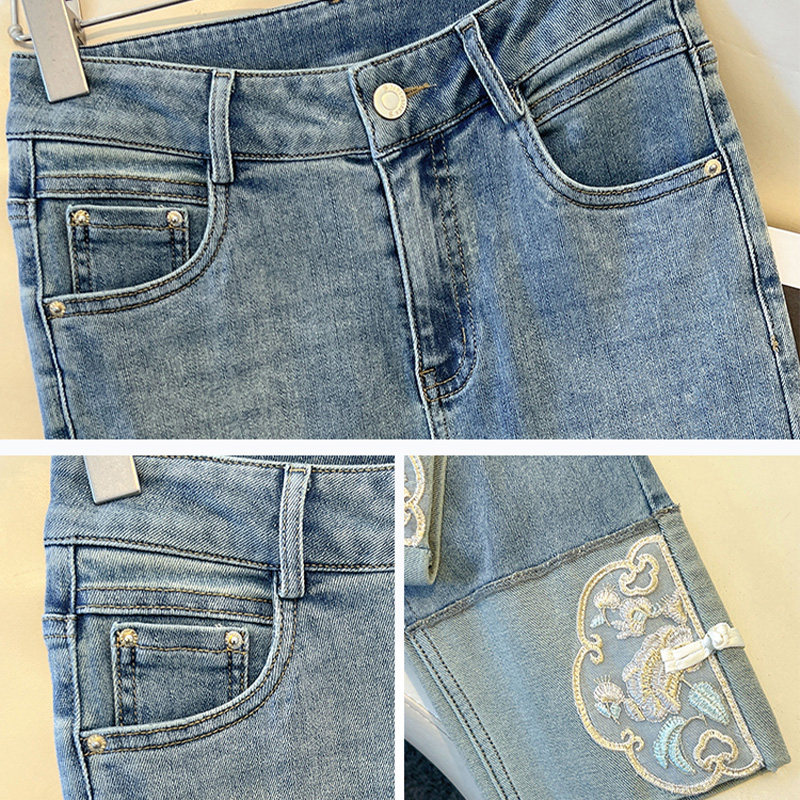 啄木鸟新中式国风大码复古牛仔裤女秋冬季新款高腰九分直筒烟管裤