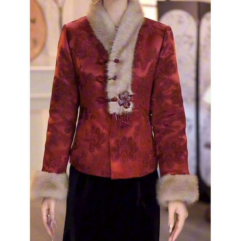 提花缎夹棉加厚新中式短款棉衣外套2025冬季新款高档显瘦国风上衣