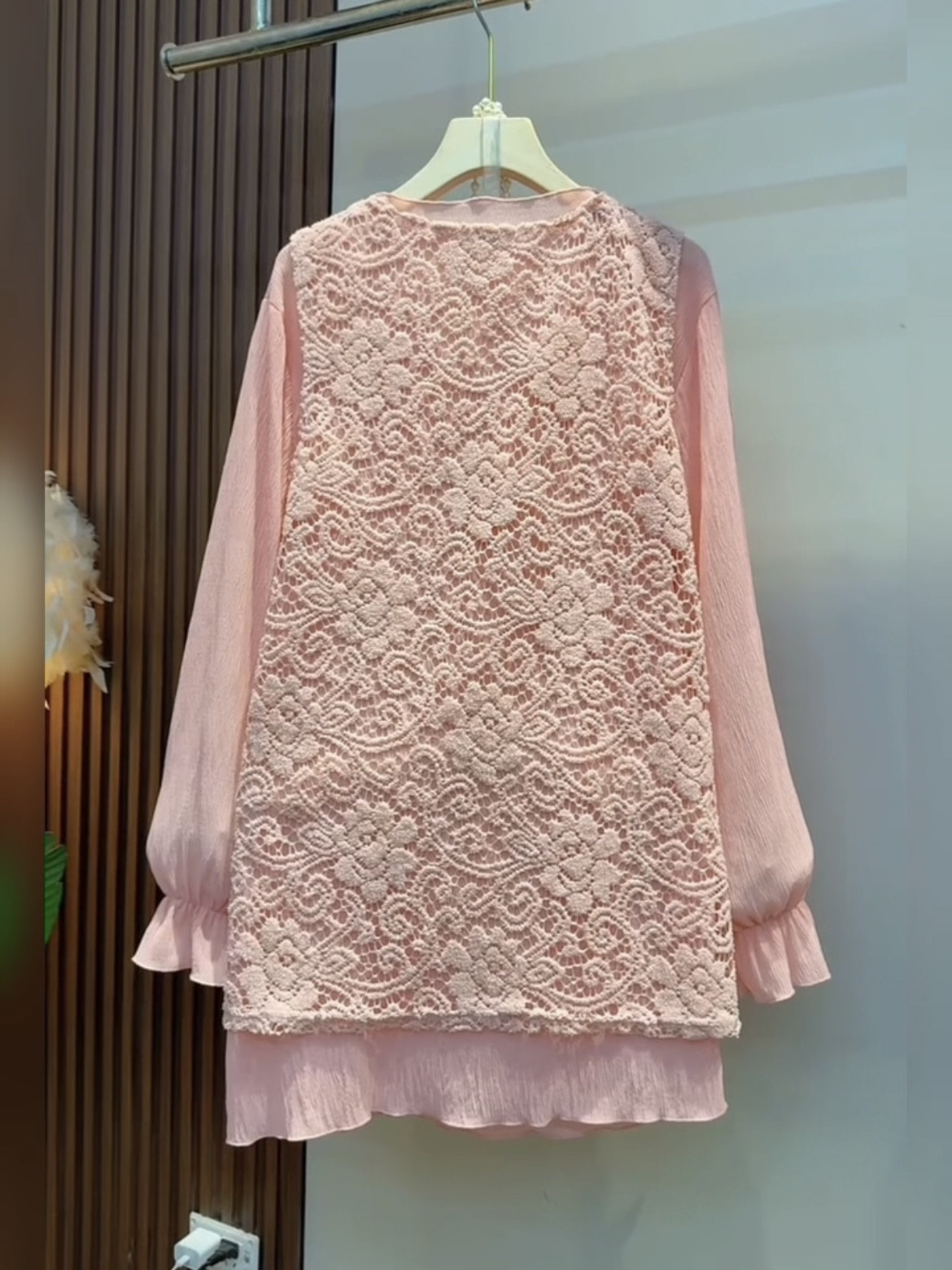 秋冬大码重工刺绣蕾丝马夹半高领打底衫两件套中长款洋气减龄内搭