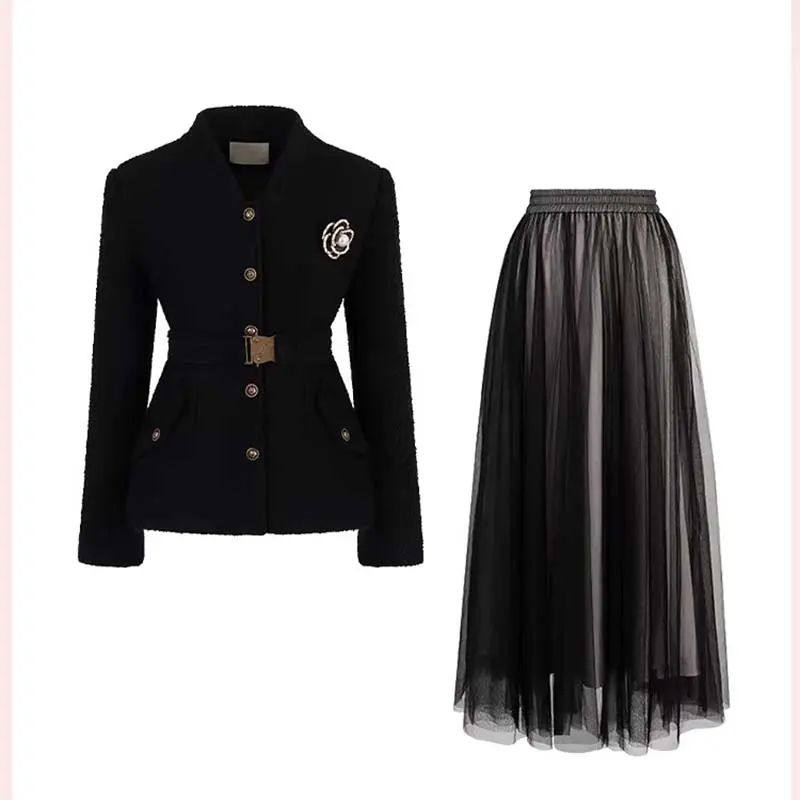 2025冬季新款加棉加厚送腰带收腰外套超好看网纱半裙套装QY0128