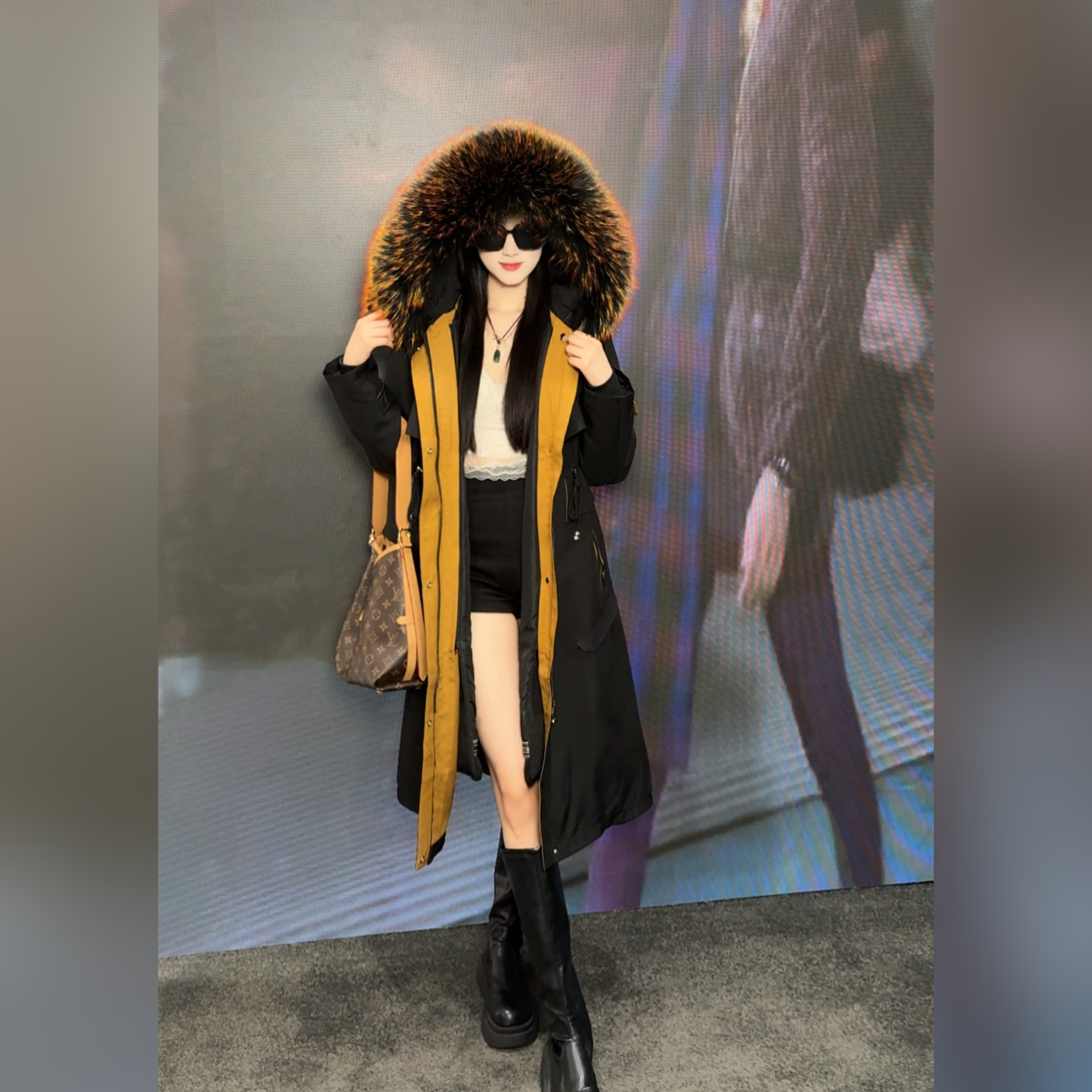 【长相思兔毛】新款貉子毛派克服女中长款连帽保暖洋气派克服