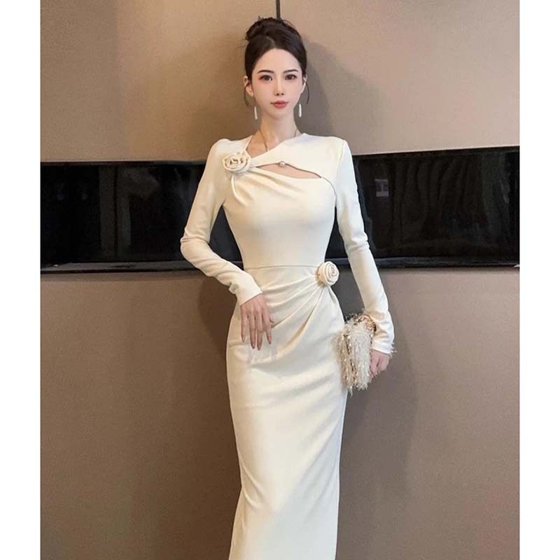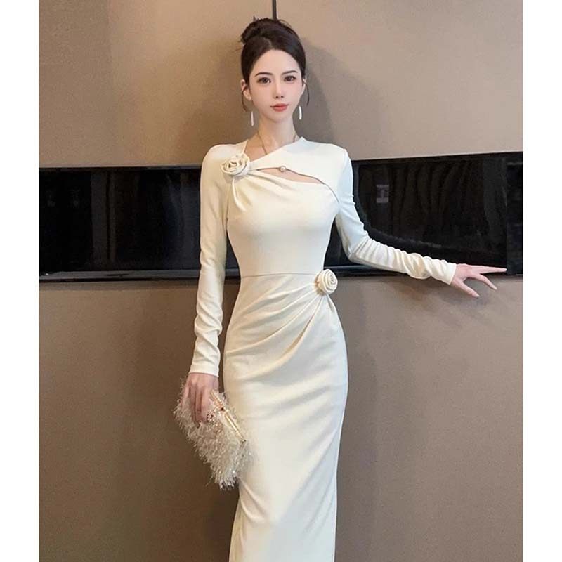 温柔风设计感打底裙2025秋冬季新款玫瑰花气质女人味连衣裙D4030