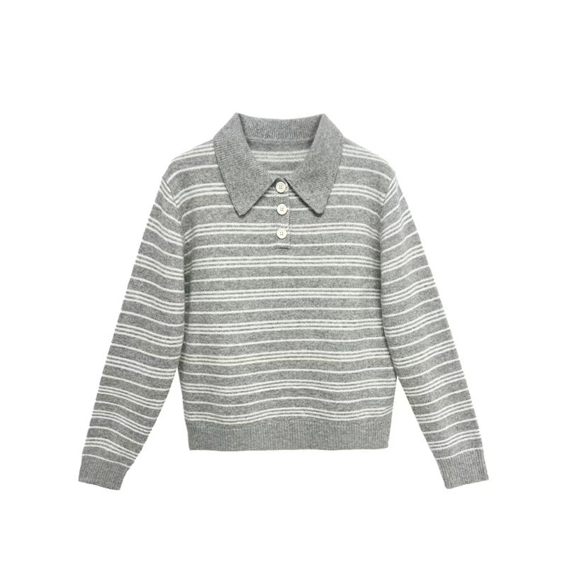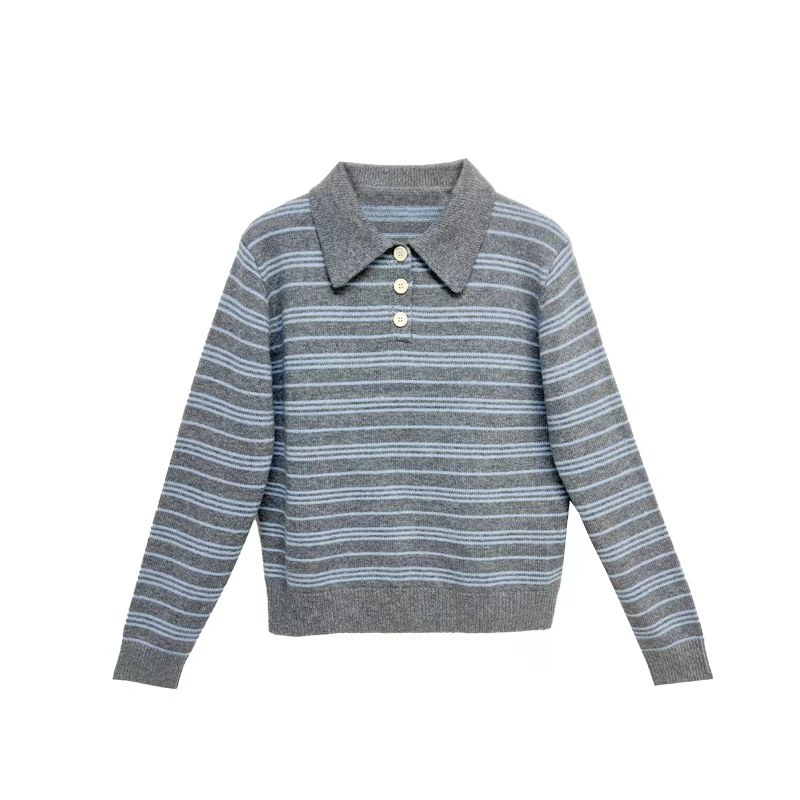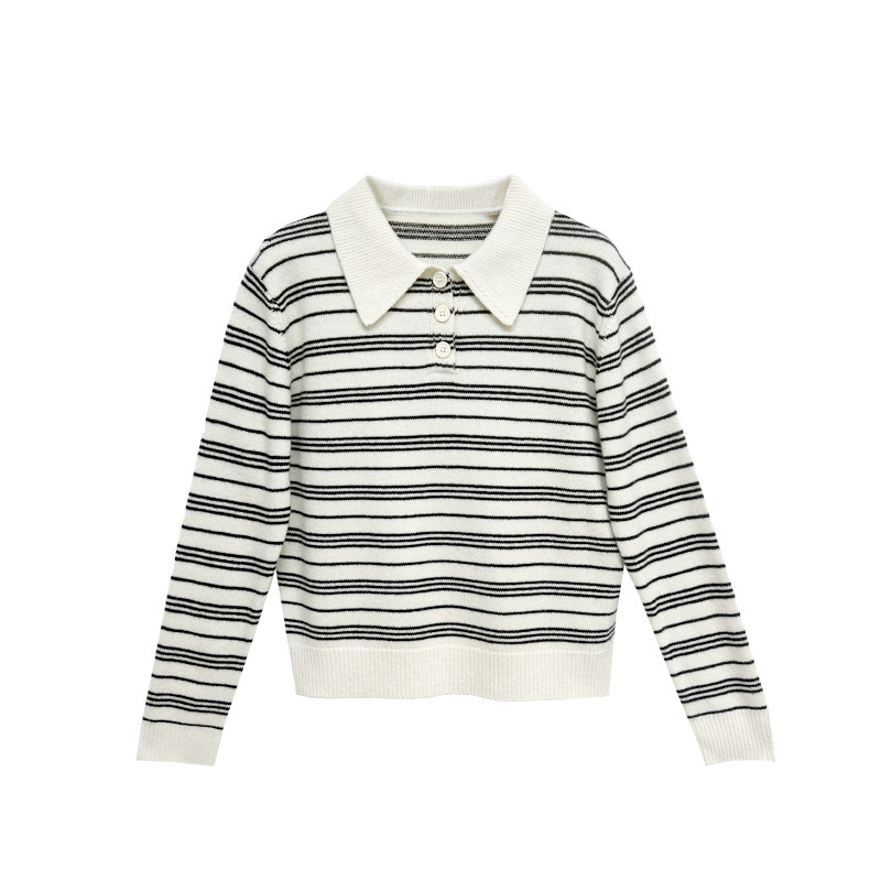 【橙庐】588206学院风条纹拼花翻领绵羊毛衫 春秋女时尚休闲百搭