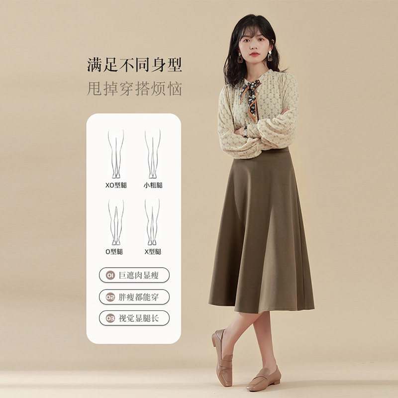 首页> 女装> 毛呢伞裙半身裙女2025新款秋冬款百褶裙小个子垂感大摆西装裙中裙