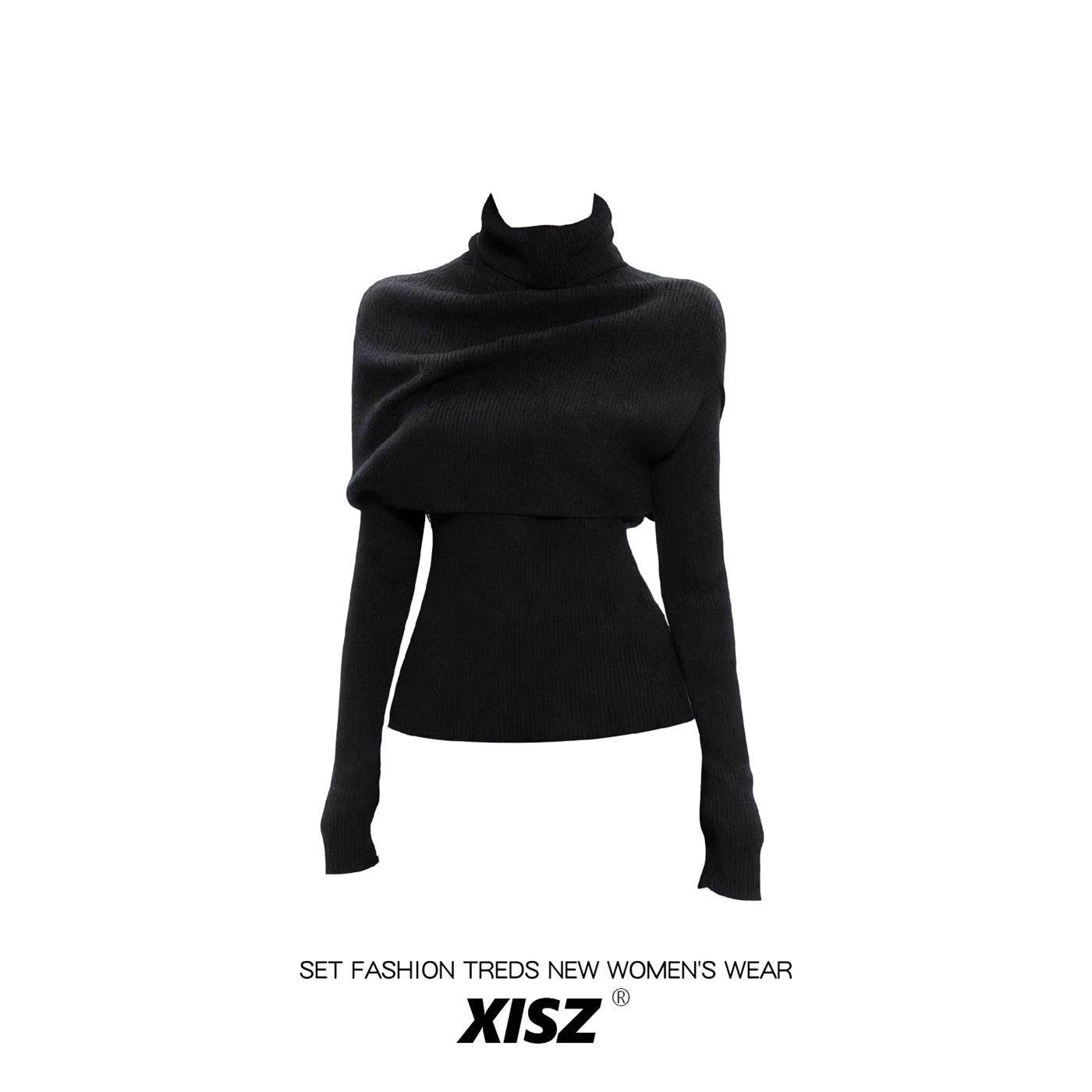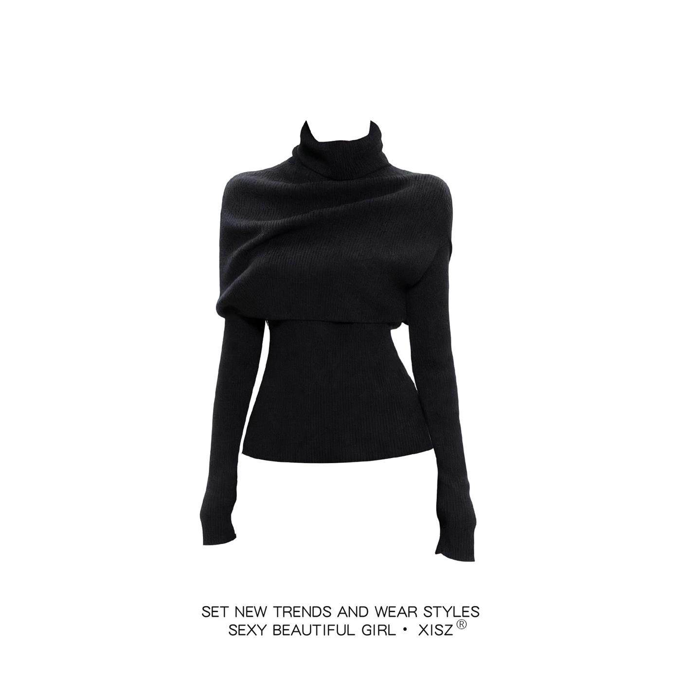 法式高领披肩针织衫女秋冬季修身显瘦打底衫内搭高级感黑色毛衣
