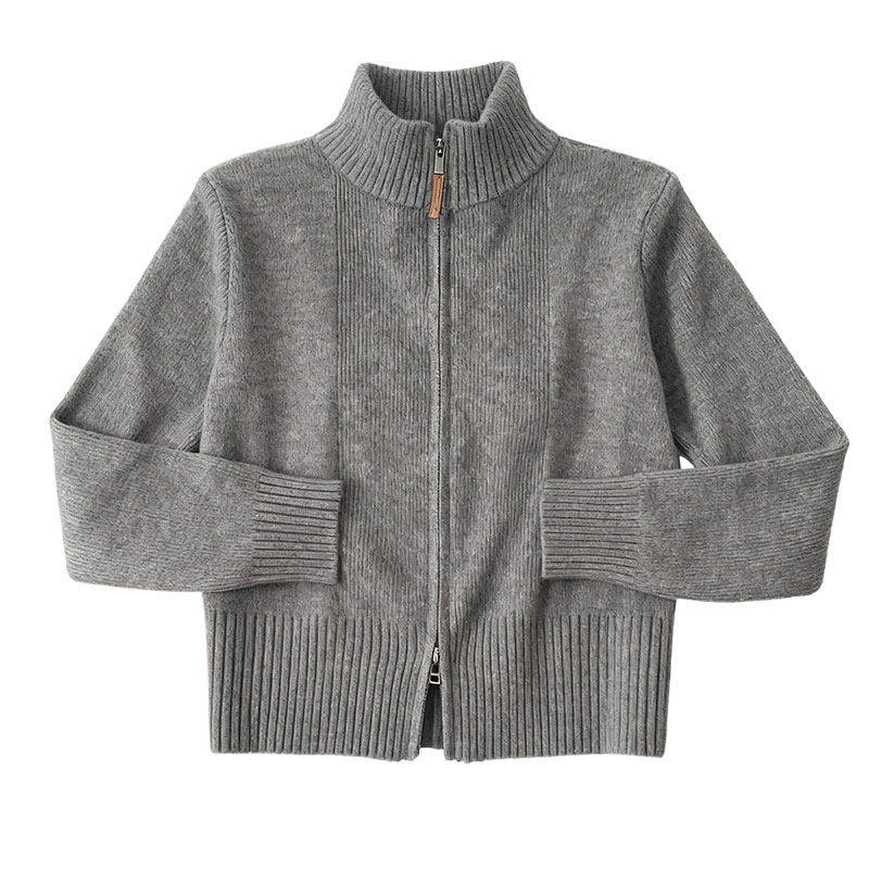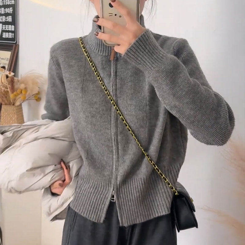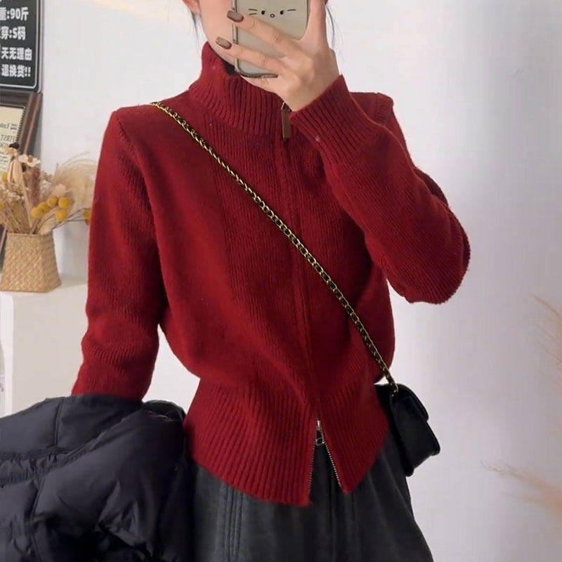 双拉链高领针织开衫毛衣女款2025年新款多巴胺穿搭小个子内搭冬装
