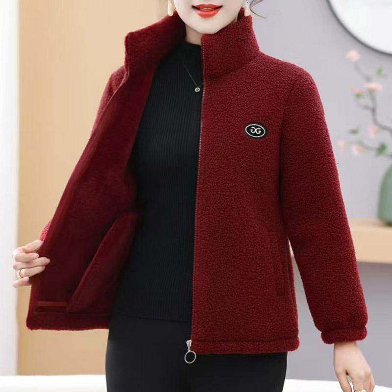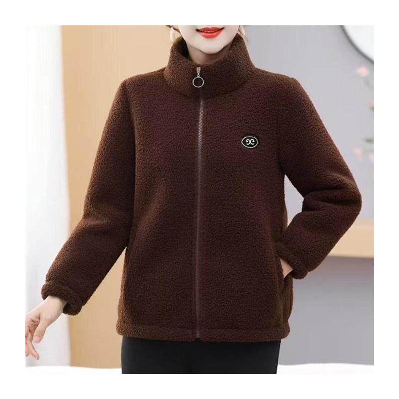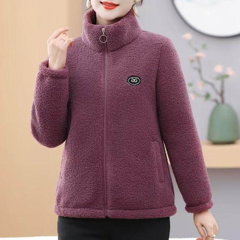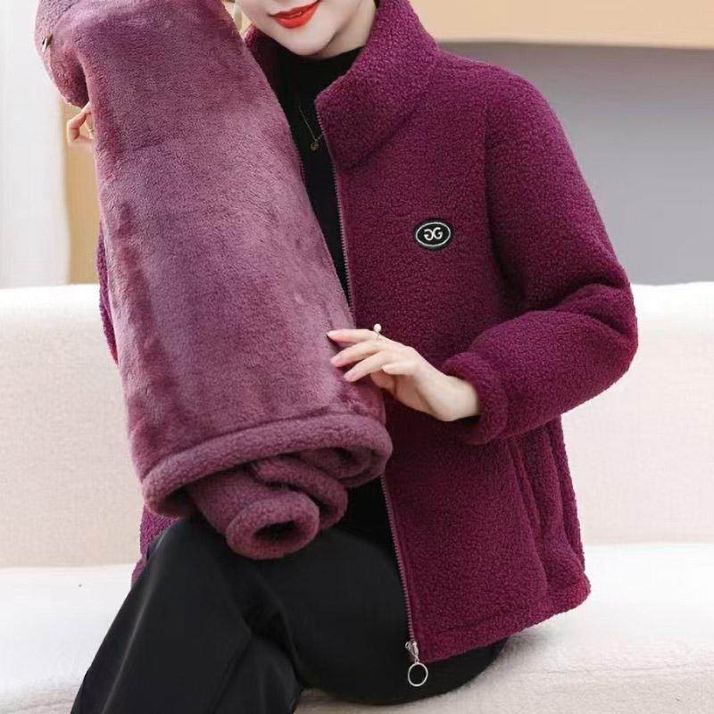 冬季新款时尚洋气减龄百搭加绒加厚妈妈颗粒绒棉衣外套保暖上衣