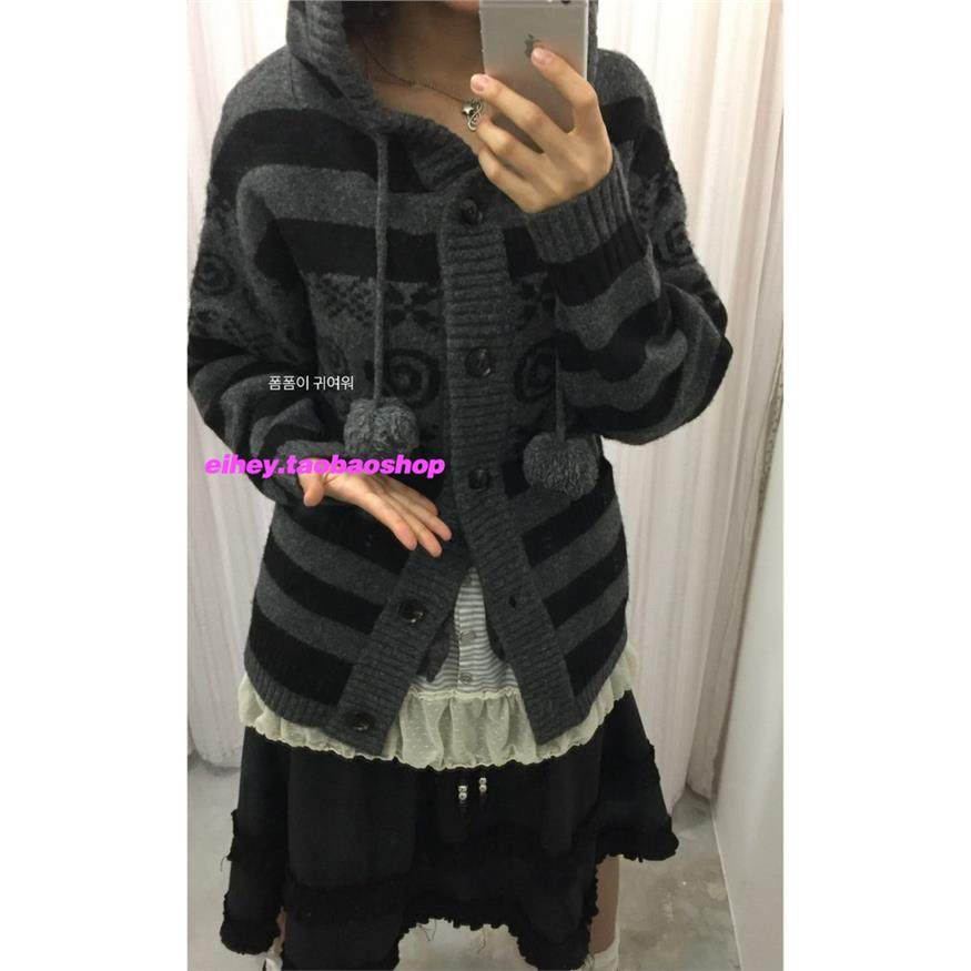 eihey诶嘿25秋季新款日系条纹连帽针织衫毛衣纽扣开衫休闲外套女
