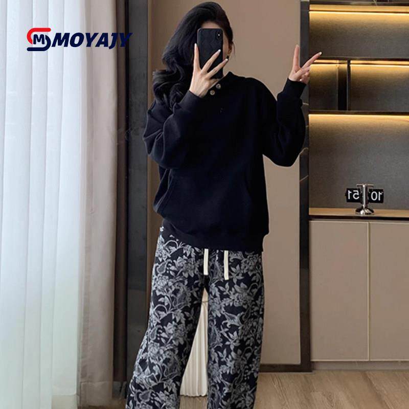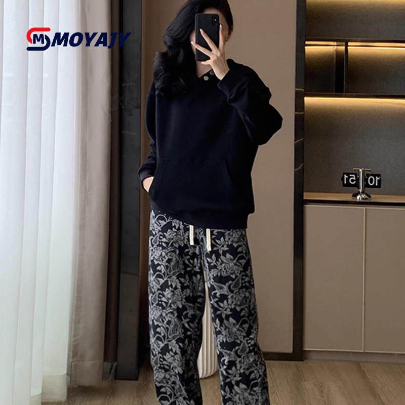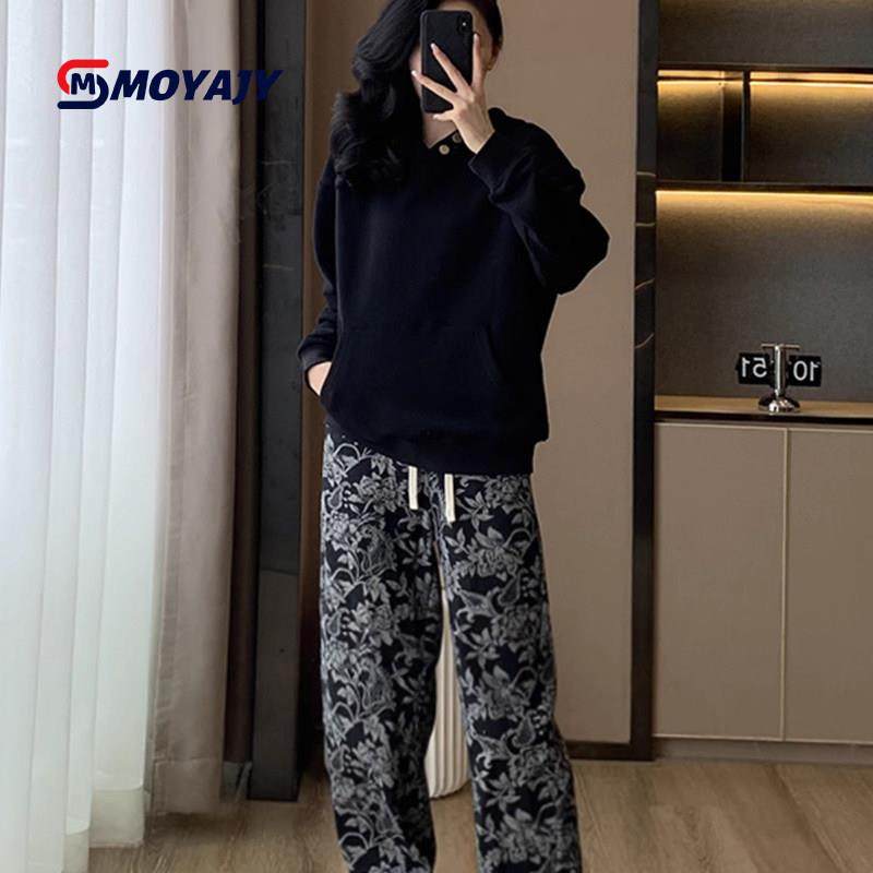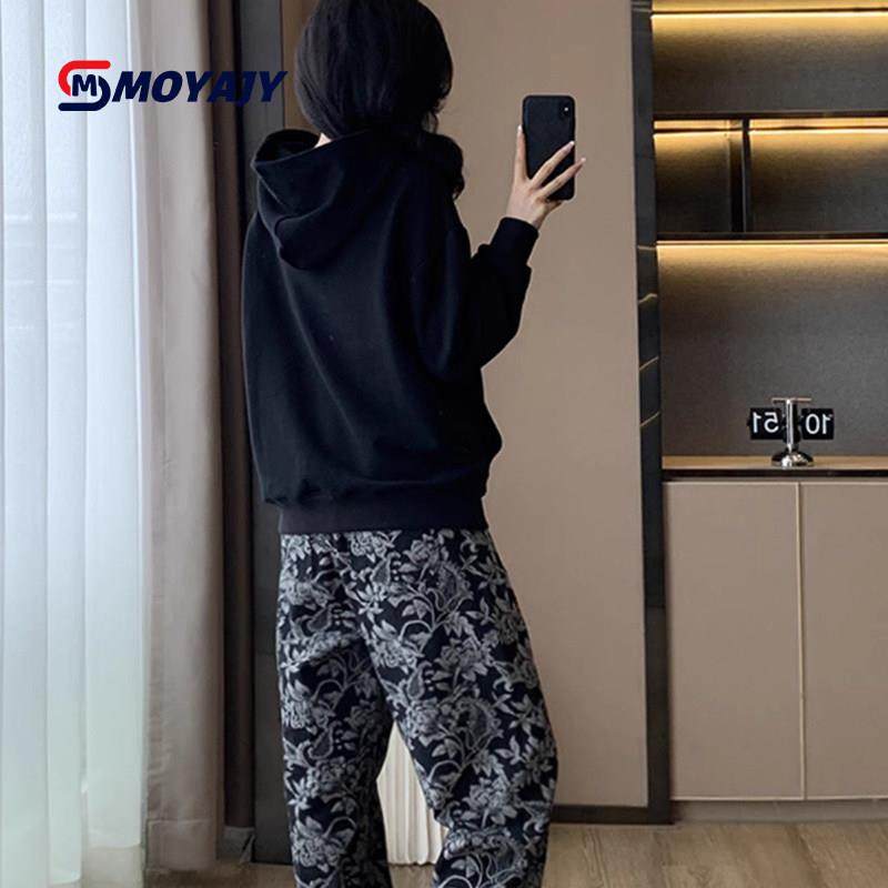 首页> 女装> MOYAJY品牌冬季新款宽松韩版黑色卫衣提花休闲裤两件套
