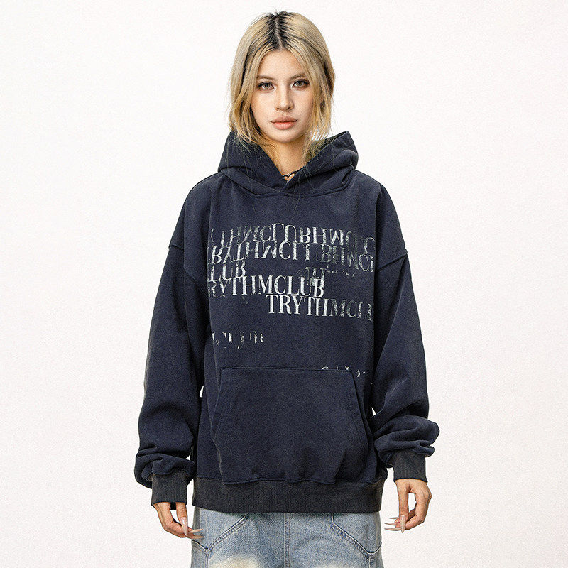 CTB啤酒队长 美式藏青色连帽运动衫女春秋新款情侣装上衣慵懒外套