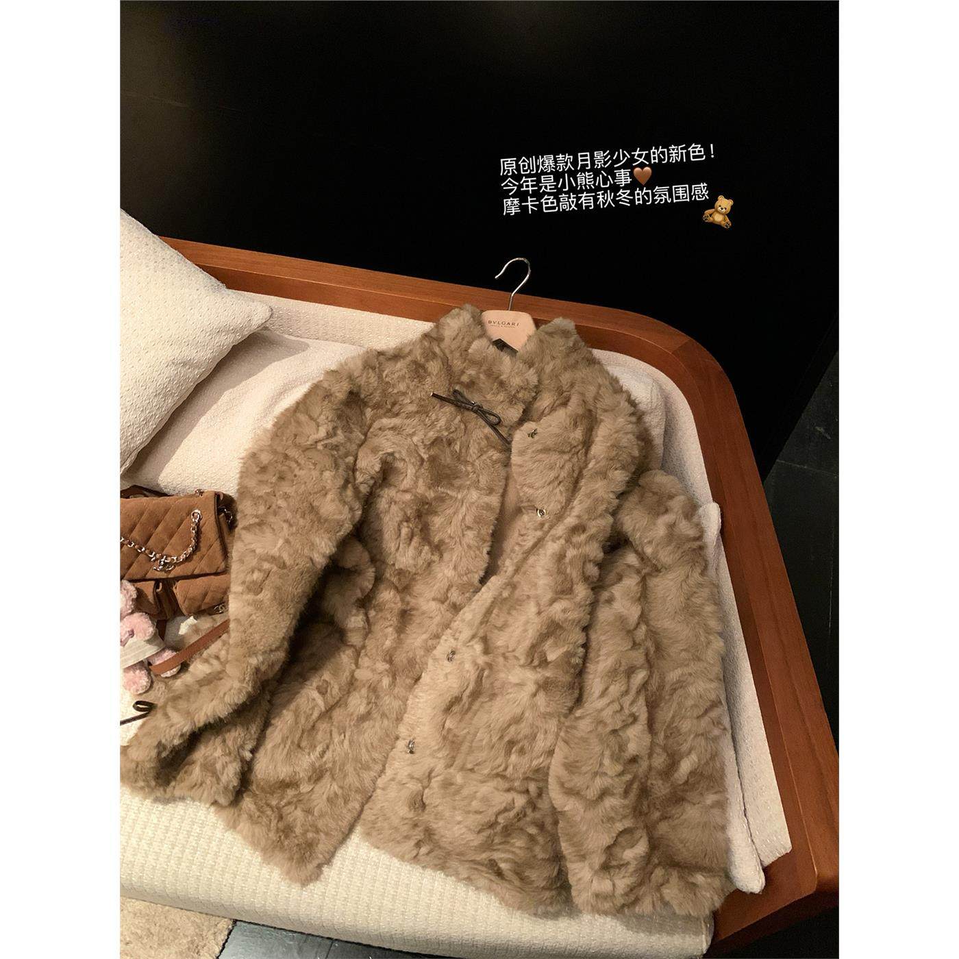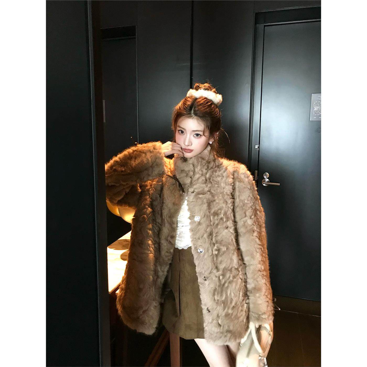 小熊心事立领染尖花狐貂皮毛一体女冬季慵懒风休闲环保皮草外套