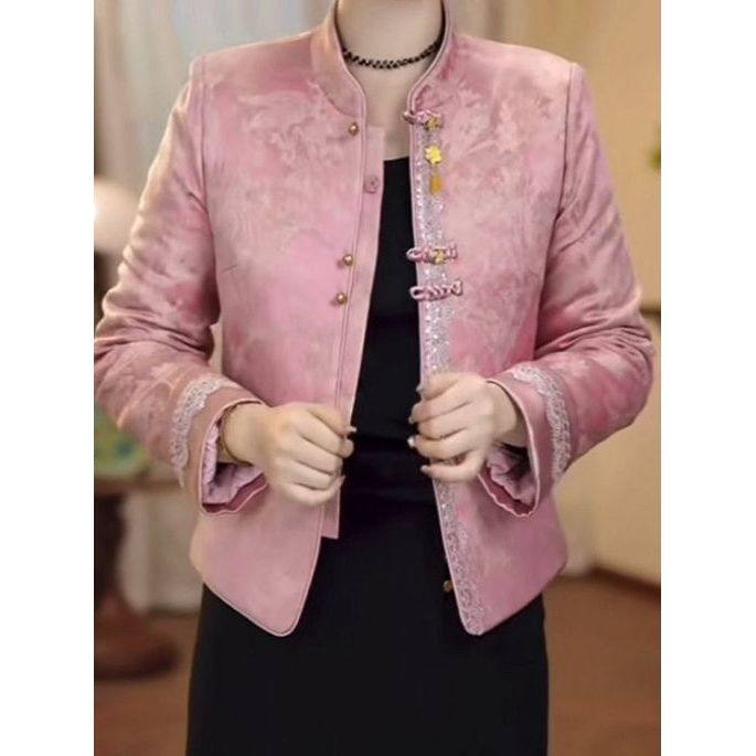 新中式宋锦提花缎加厚棉衣外套2025冬季新款时尚气质显瘦保暖棉服
